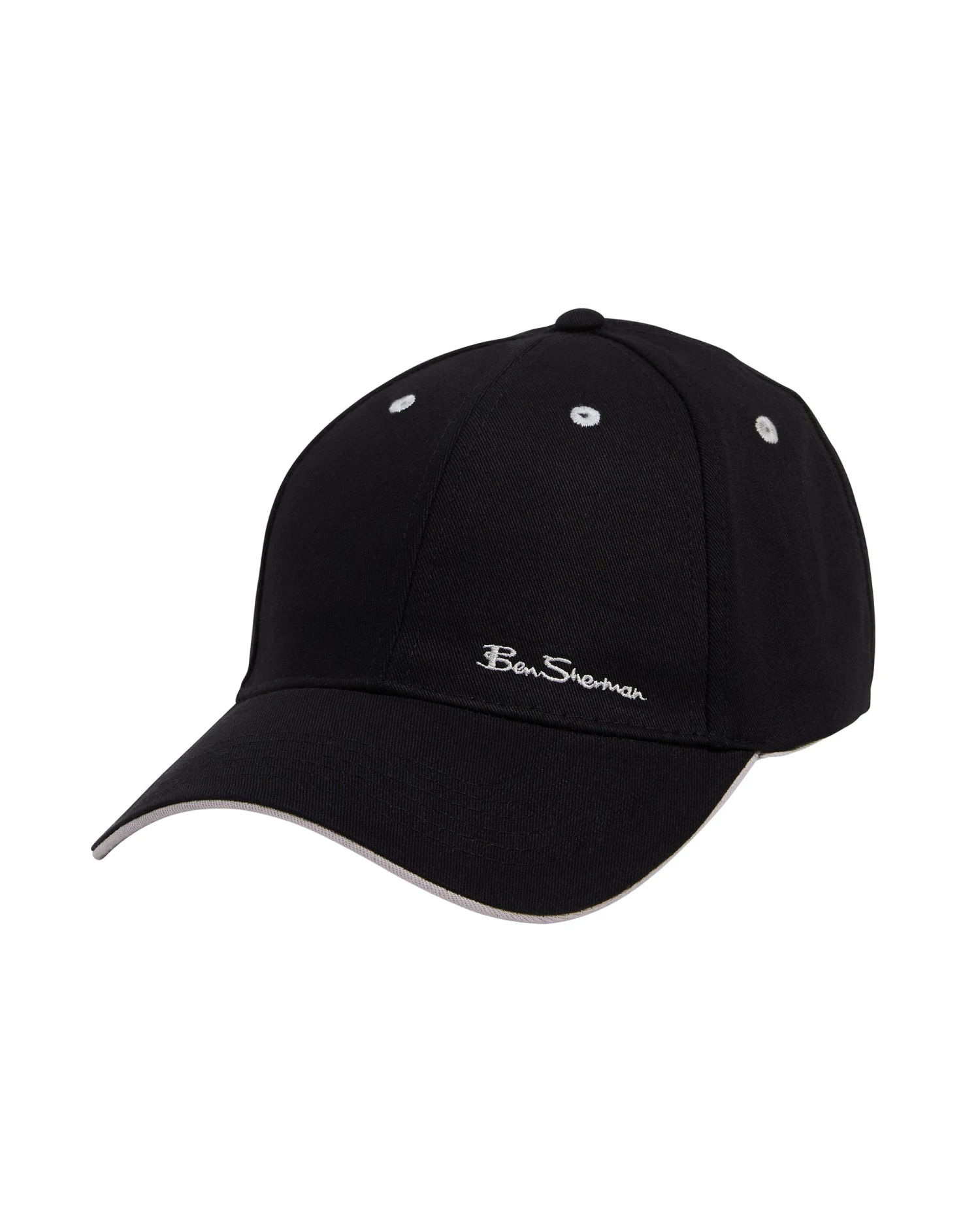 This contrast-tipped baseball hat features an embroidered Ben Sherman logo on the front-left side and an adjustable metal-clasp closure to ensure a comfortable fit.