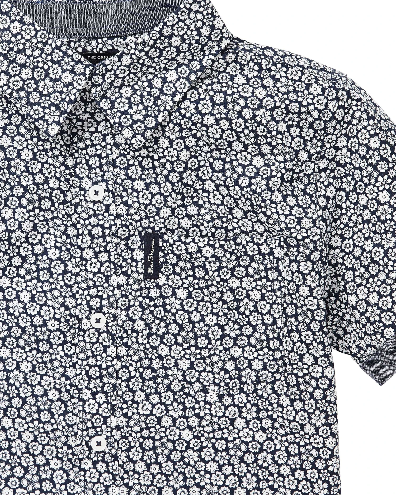 This short-sleeve button-up for your little gent comes in an eye-catching blue floral print.