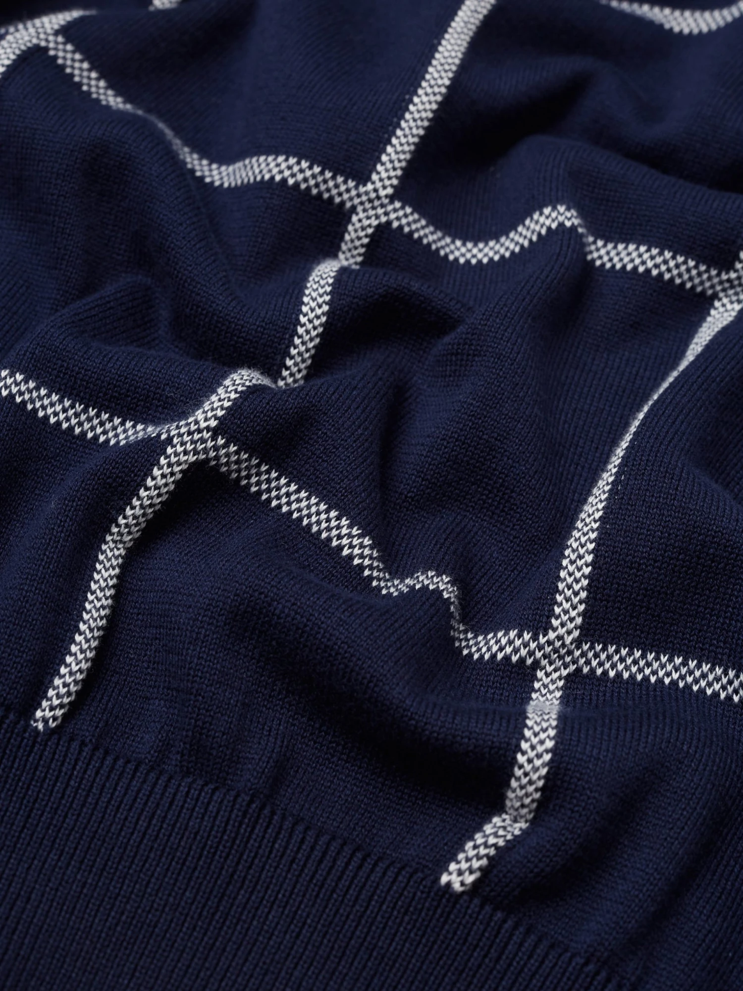 A short sleeve knitted polo with a jacquard check design to the front. This oversized check makes this polo stand out and feel contemporary. As part of our “B by Ben Sherman” range, this polo is branded with an embroidered B logo to the chest.