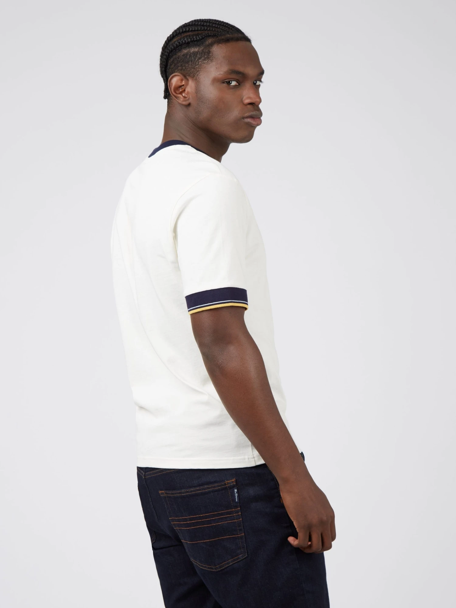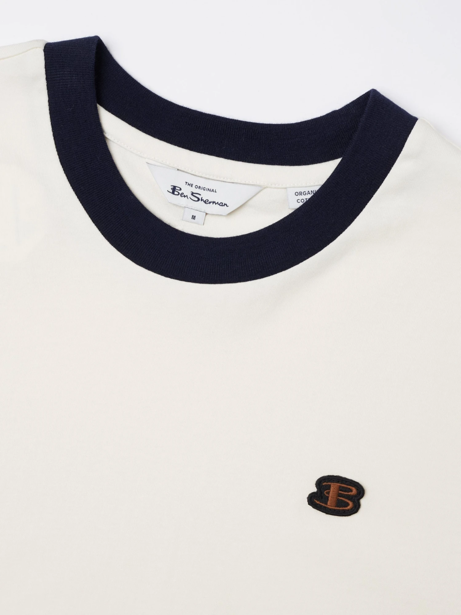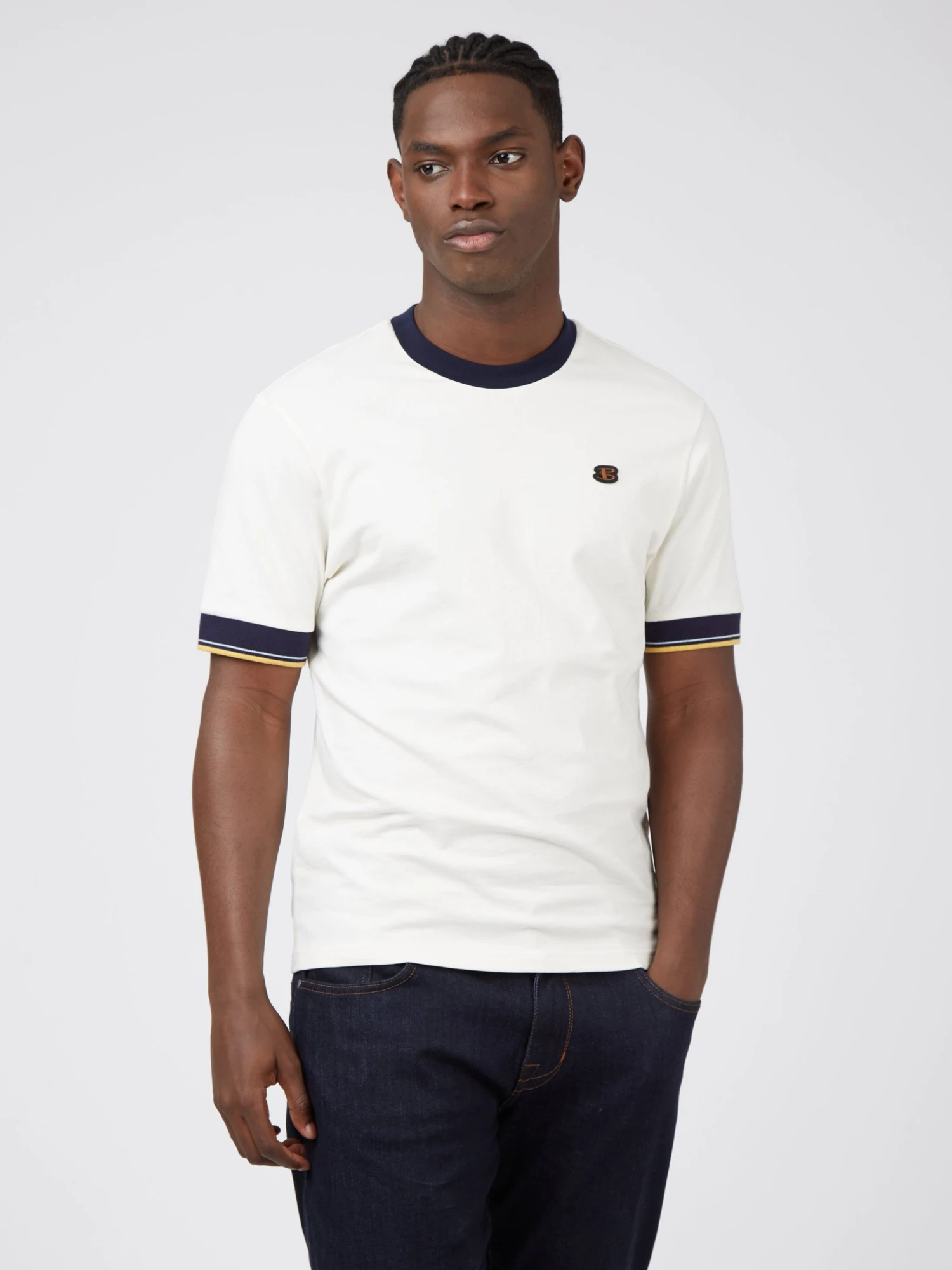 Cotton jersey tee with contrast stripe at the cuff. Branded with a ”B” embroidered badge