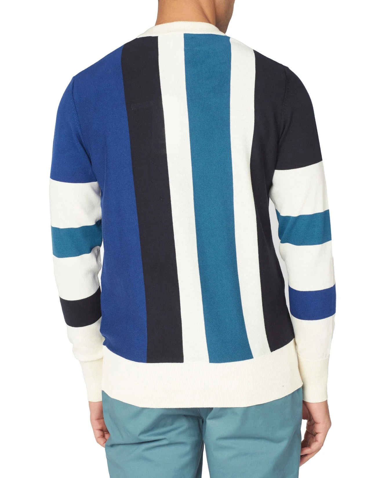 This striped crewneck sweater is made from 100% organic cotton and is designed with an all-over vertical color-blocking stripe pattern. As part of our “B by Ben Sherman” range, this jumper is branded with an embroidered B badge on the chest.