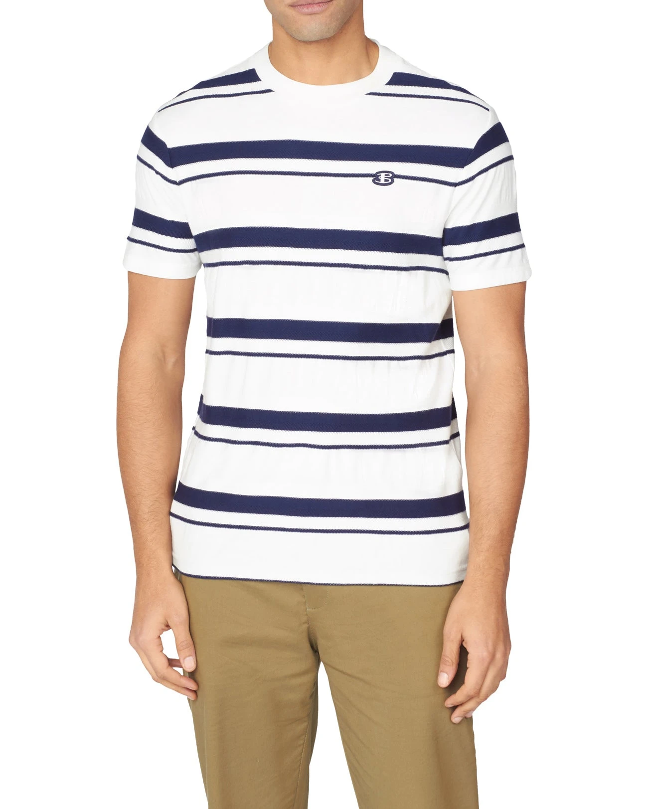 Featuring an all-over textured stripe design, this textured tee is part of our “B by Ben Sherman” range and branded with an embroidered B chest logo.