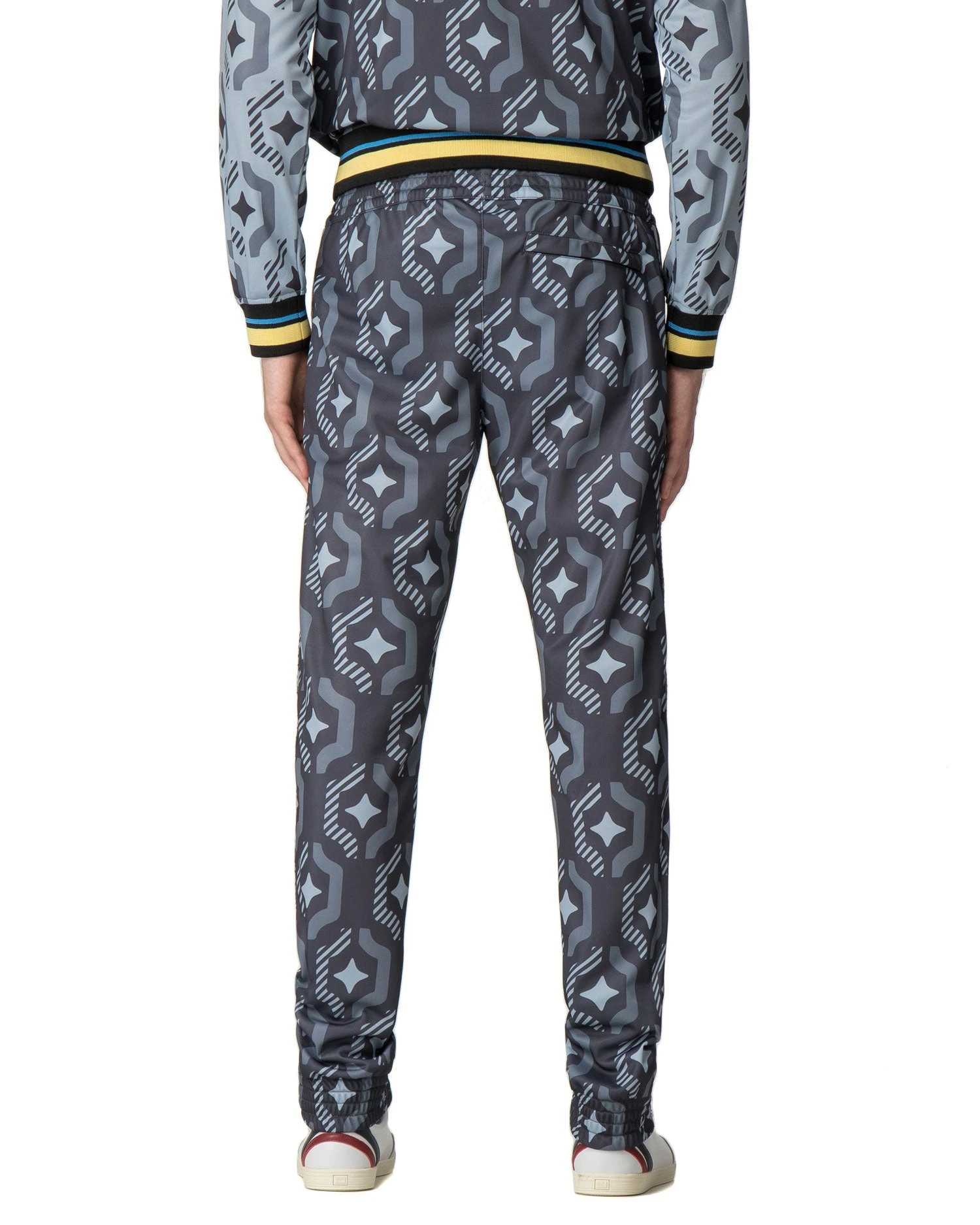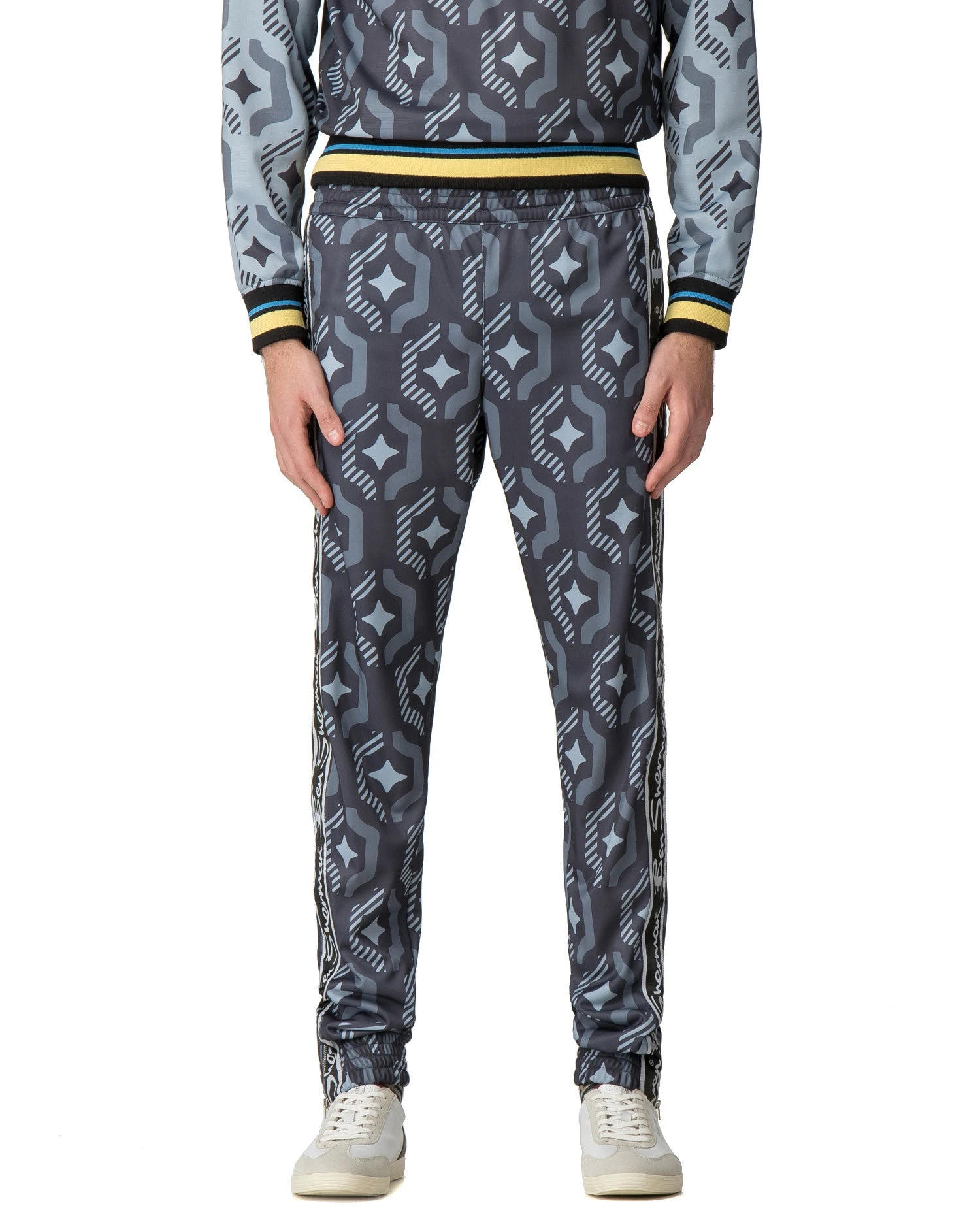 From the Ben Sherman x House of Holland collection, the Geo Wallpaper Digitally Printed Tracksuit Pants feature a blue vintage-inspired geometric print inspired by a classic retro-cool wallpaper design. More detailing includes a black-and-white Ben Sherman logo along the outer seam and yellow-and-blue accents on the waistband.