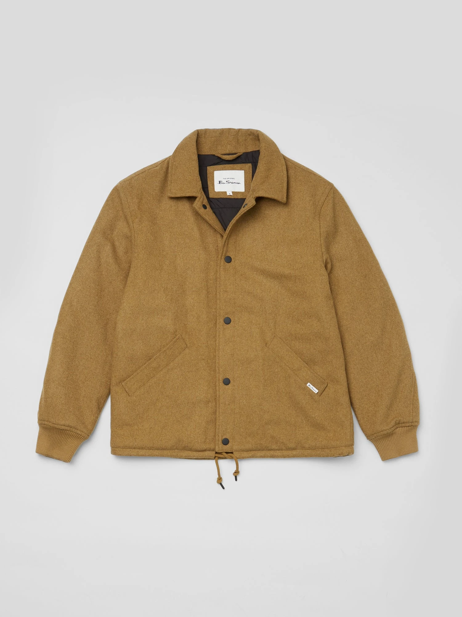 This wool coach jacket features wadded, quilted lining; two external pockets; one internal pocket; and is branded with a Ben Sherman flag label on the pocket seam. Ribbed cuffs and a drawcord hem complete the look.