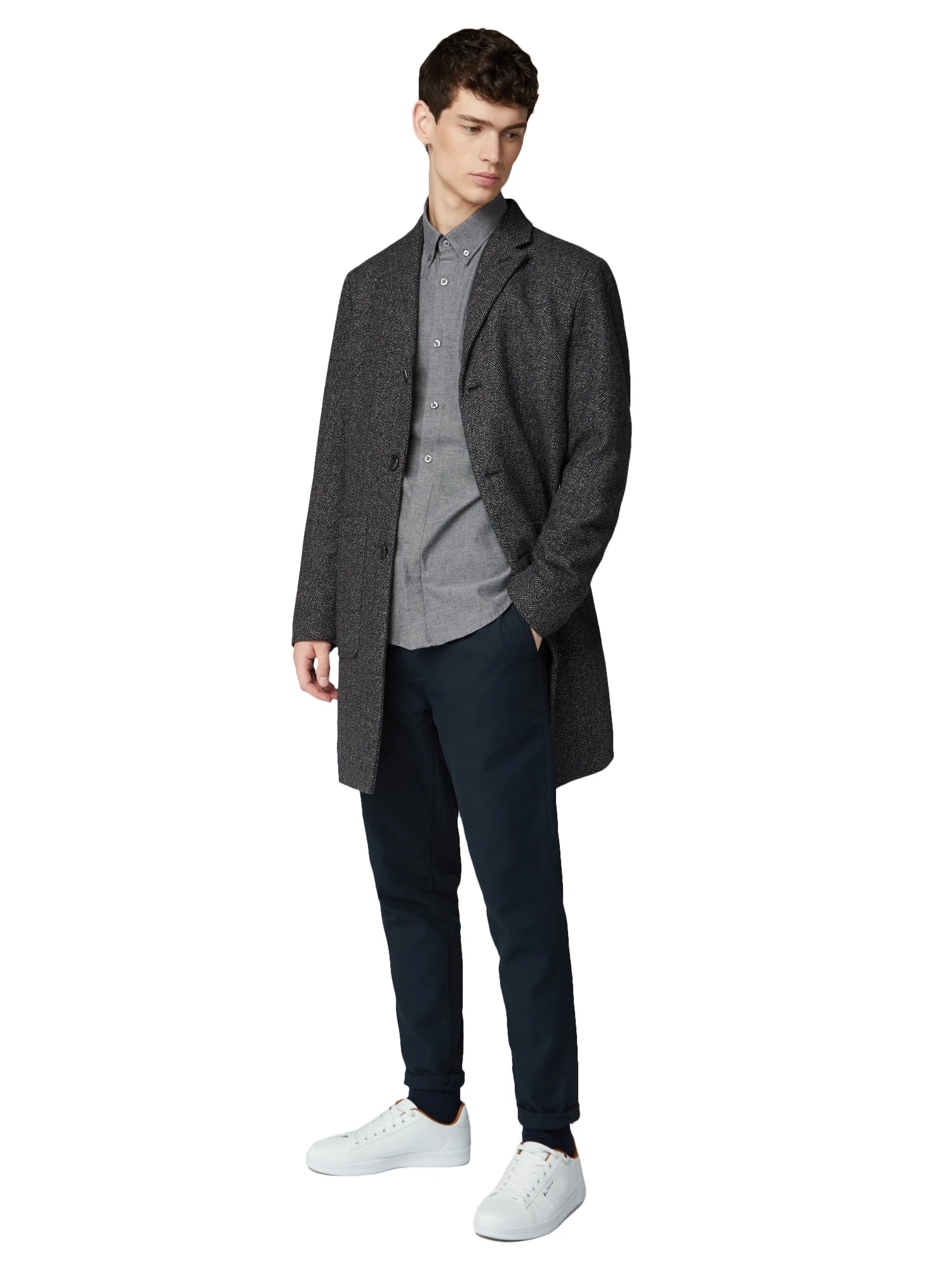 Our herringbone overcoat is an autumn and winter style with a soft wool blend and a relaxed fit. With a button fastening and a sweeping design, this men’s overcoat combines our heritage aesthetic with the classic features of a men’s jacket.