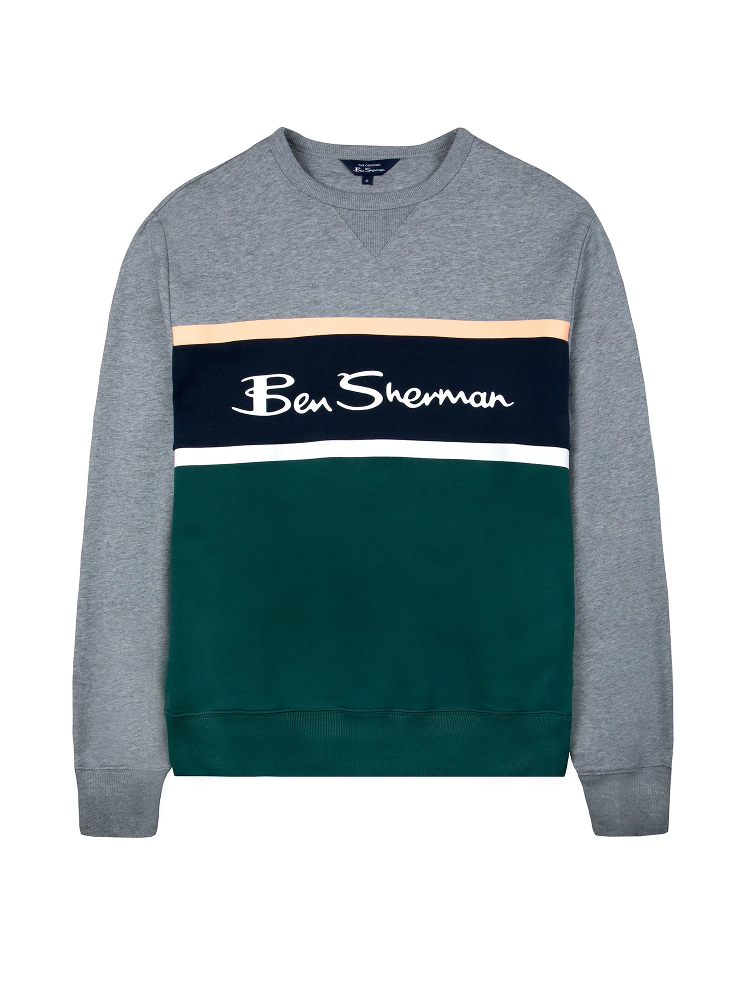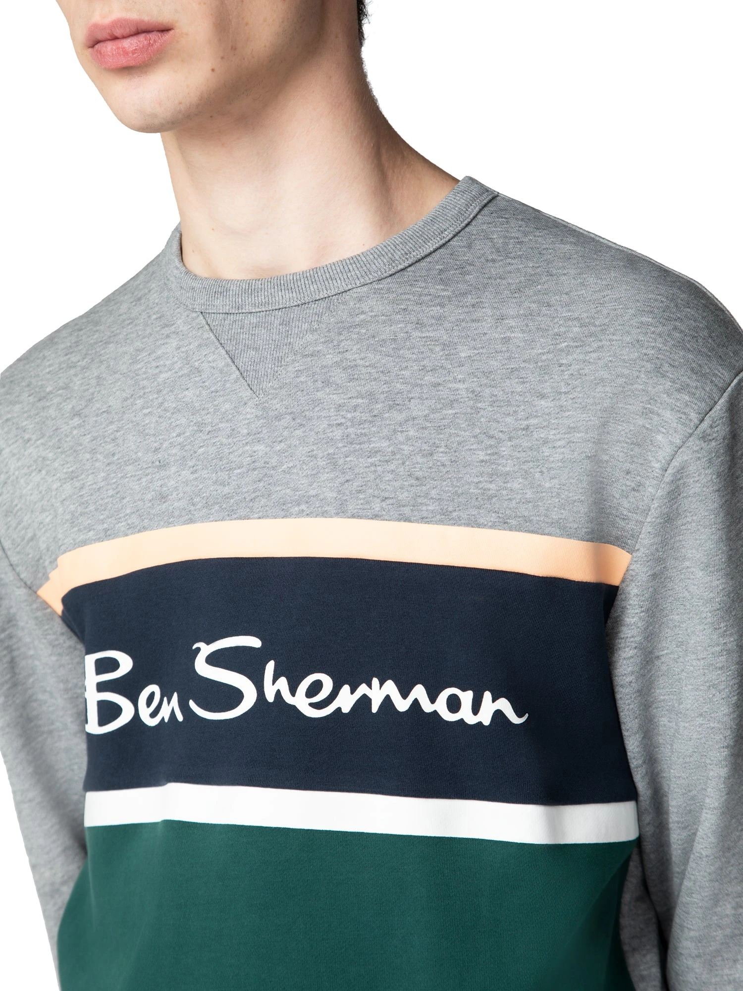 This cotton crewneck sweatshirt has contrast cut-and-sew panels and an oversized “Ben Sherman” contrast print.