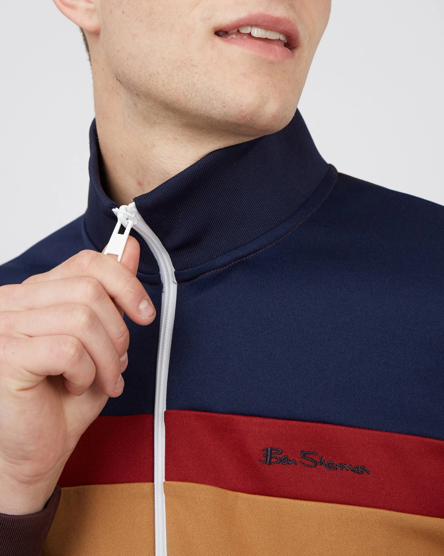 This sports-influenced zip-through tricot track jacket is designed with contrast piping to the front and a contrast center zip fastening. This cotton/polyester blend track jacket features a ribbed hem and cuffs and branded with a signature “Ben Sherman” silicone chest badge.