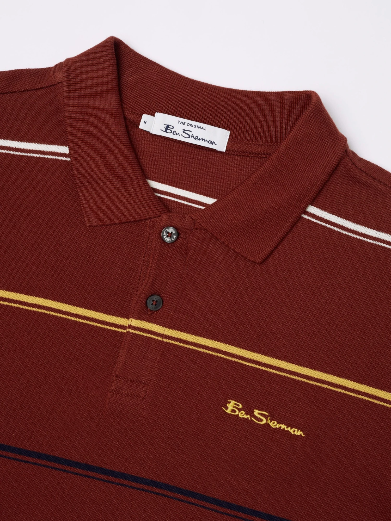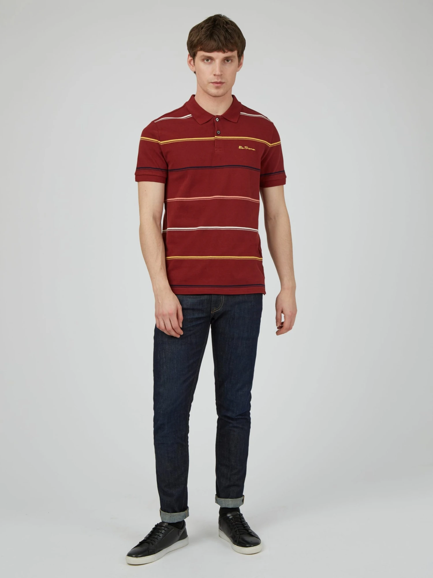 Cotton pique polo with all over stripe design and branded with Ben Sherman signature embroidery.