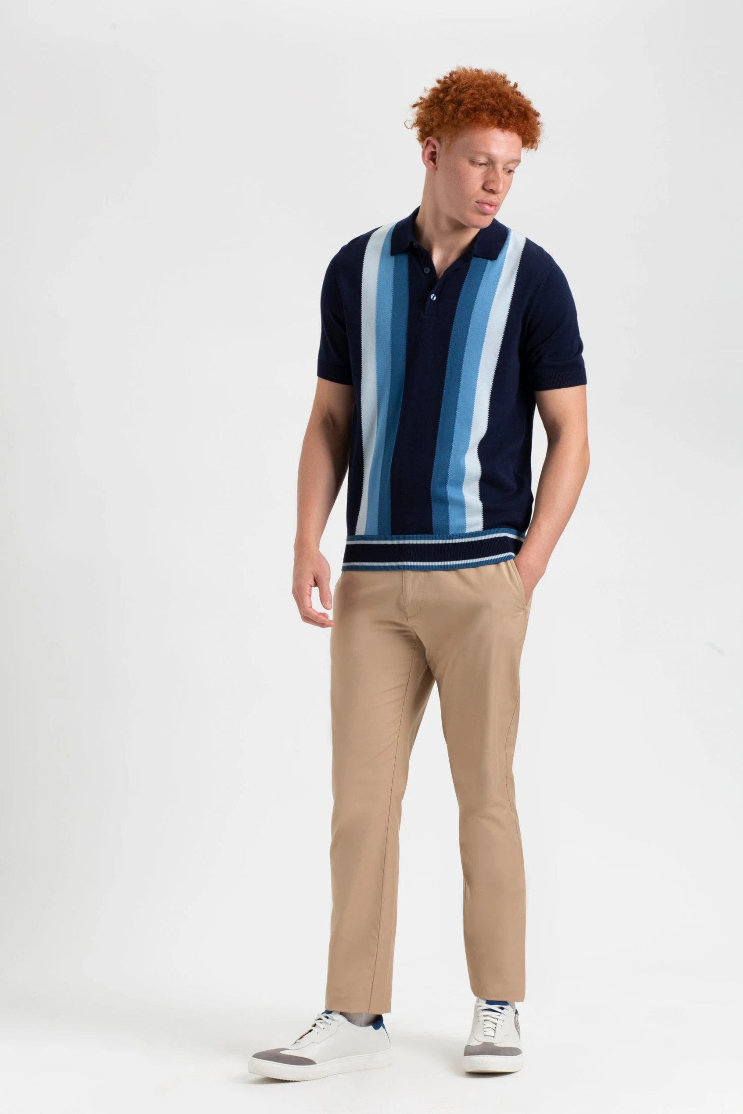 Our signature knitted polo is designed with a vertical stripe on the front and a raised texture for added interest. This mod polo is branded with a tonal signature “Ben Sherman” sleeve embroidery.