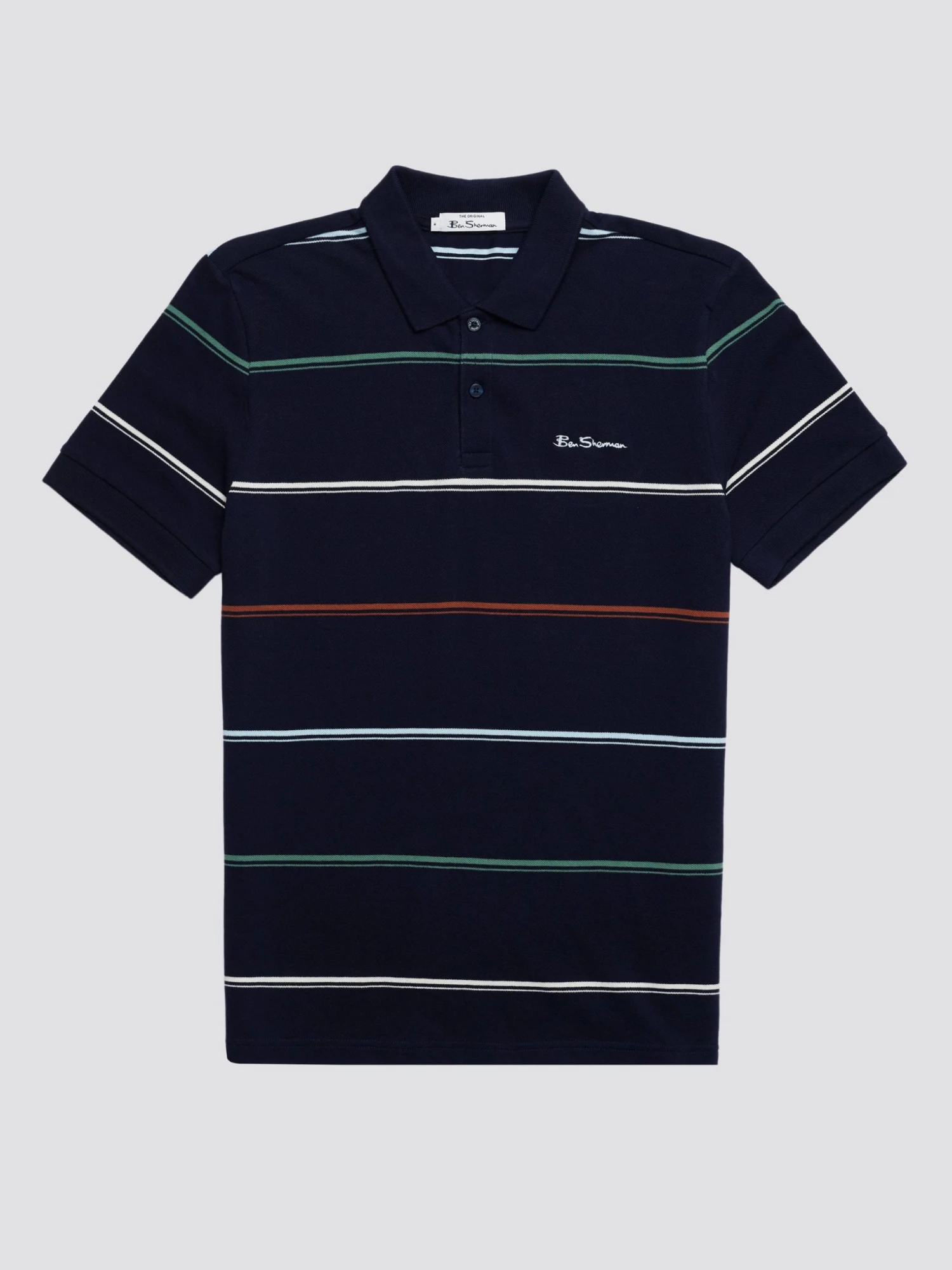 Cotton pique polo with all over stripe design and branded with Ben Sherman signature embroidery.