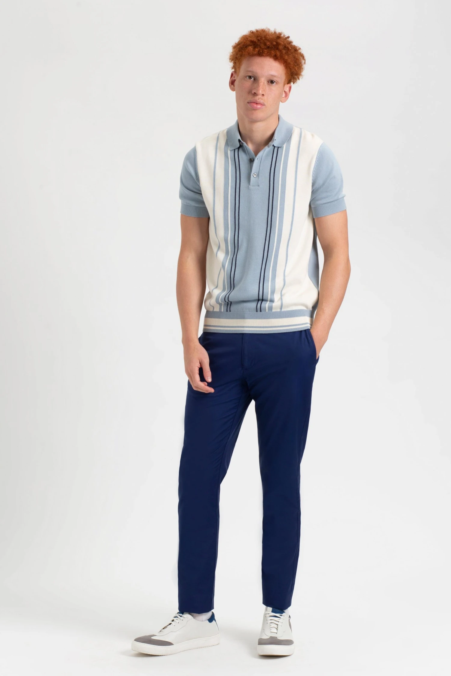 Our signature knitted polo is designed with a vertical stripe on the front and a raised texture for added interest. This mod polo is branded with a tonal signature “Ben Sherman” sleeve embroidery.