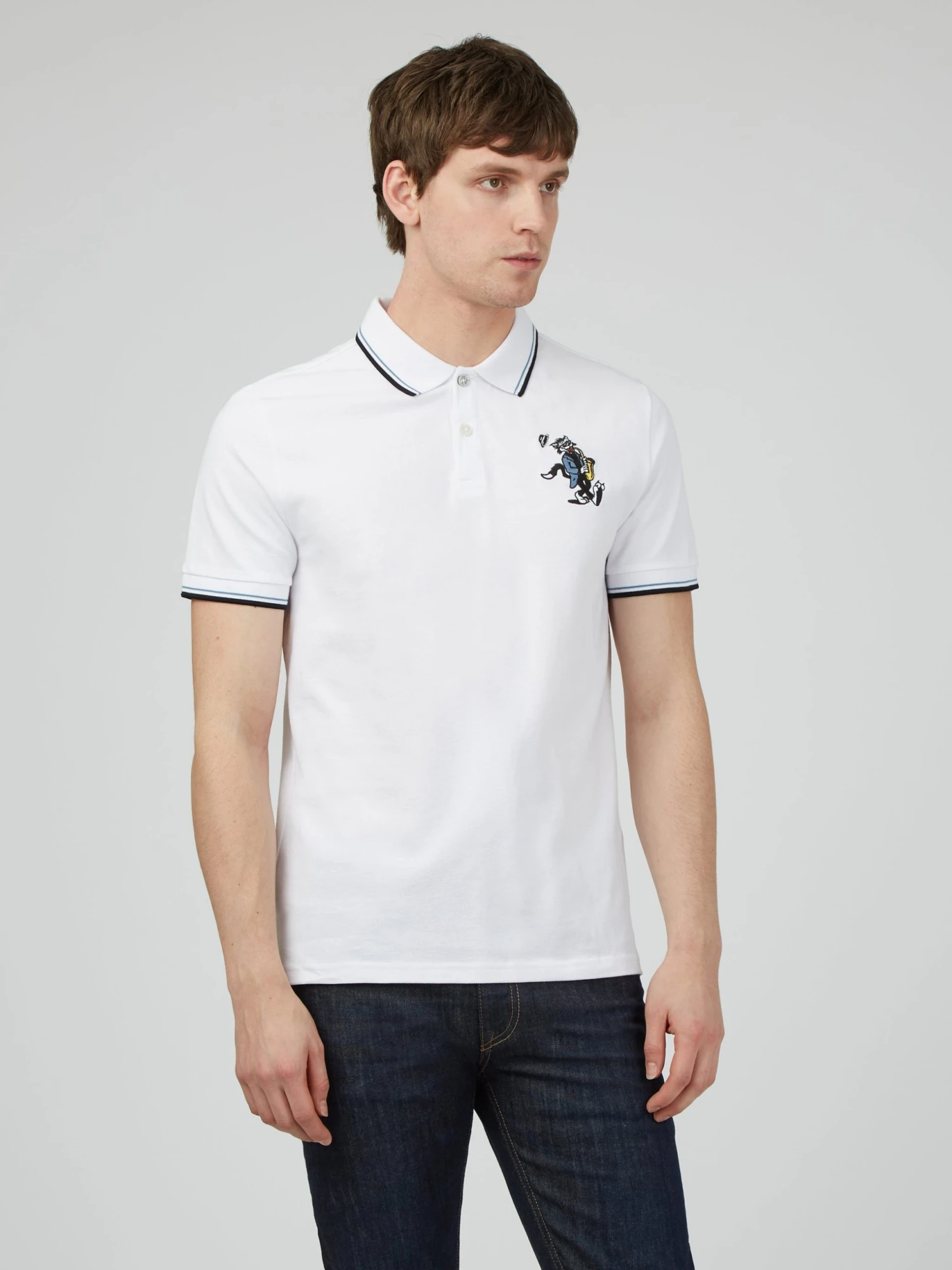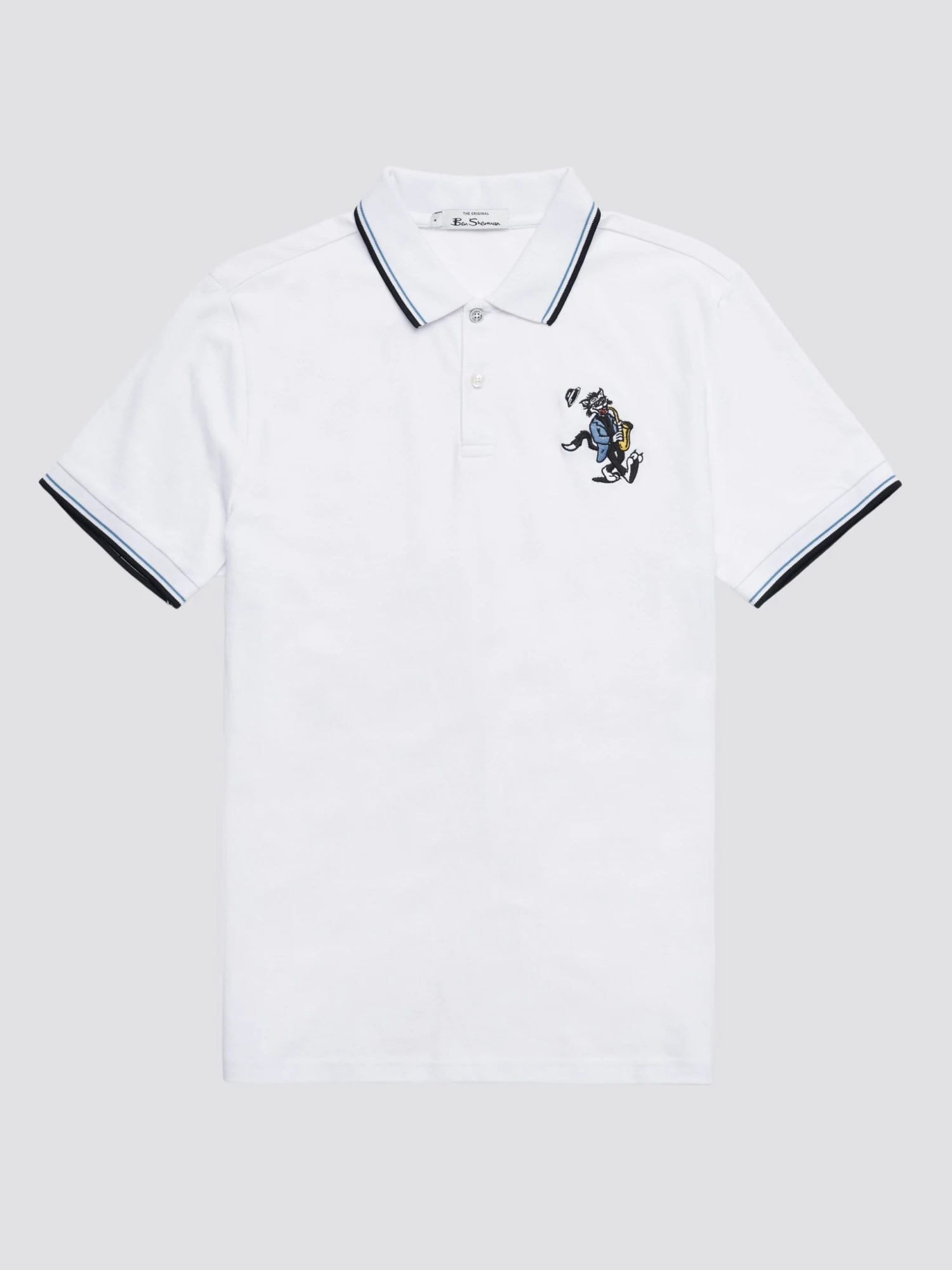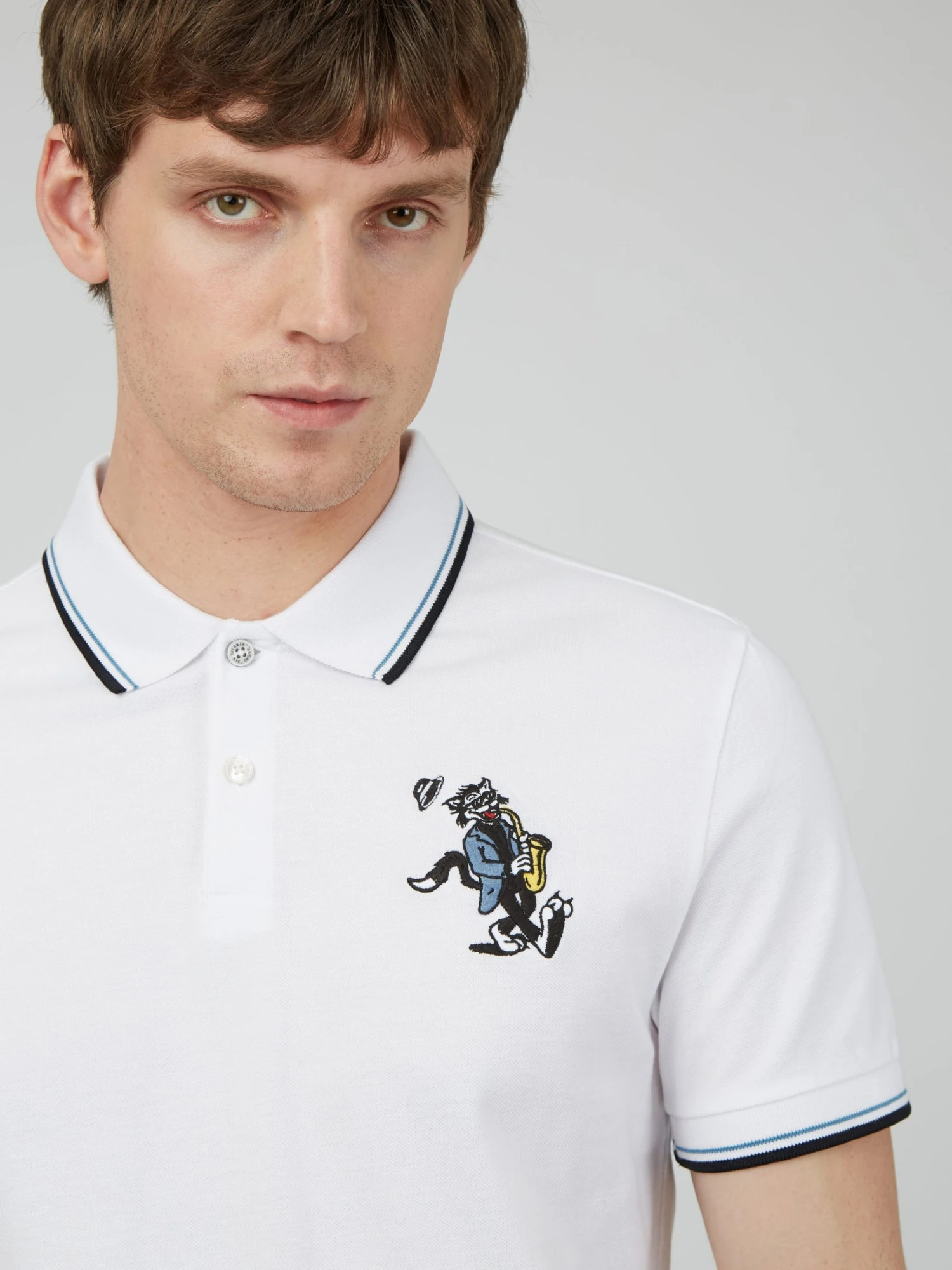 Cotton pique polo with contrast tipping detail to the collar and cuff with a music inspired chest embroidery. Branded with Ben Sherman side tab label.