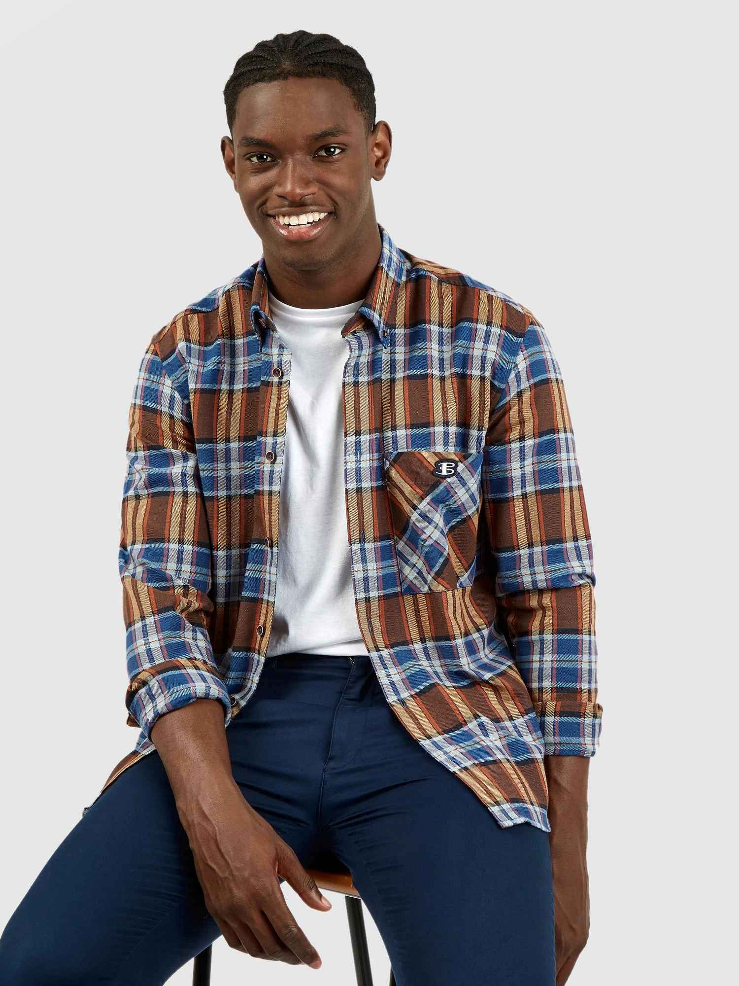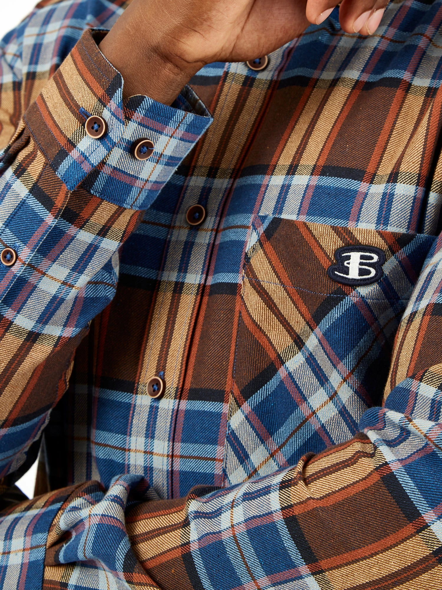 This contemporary recycled check shirt from B by Ben Sherman comes in a relaxed fit with long sleeves and features a two-finger button-down collar.
