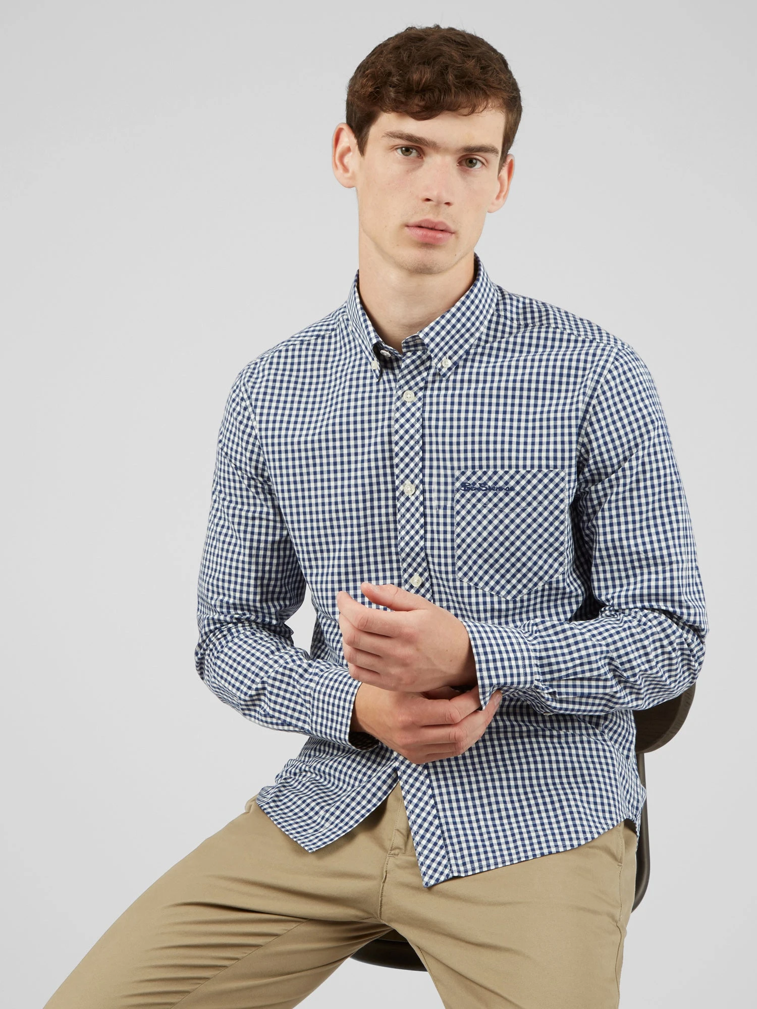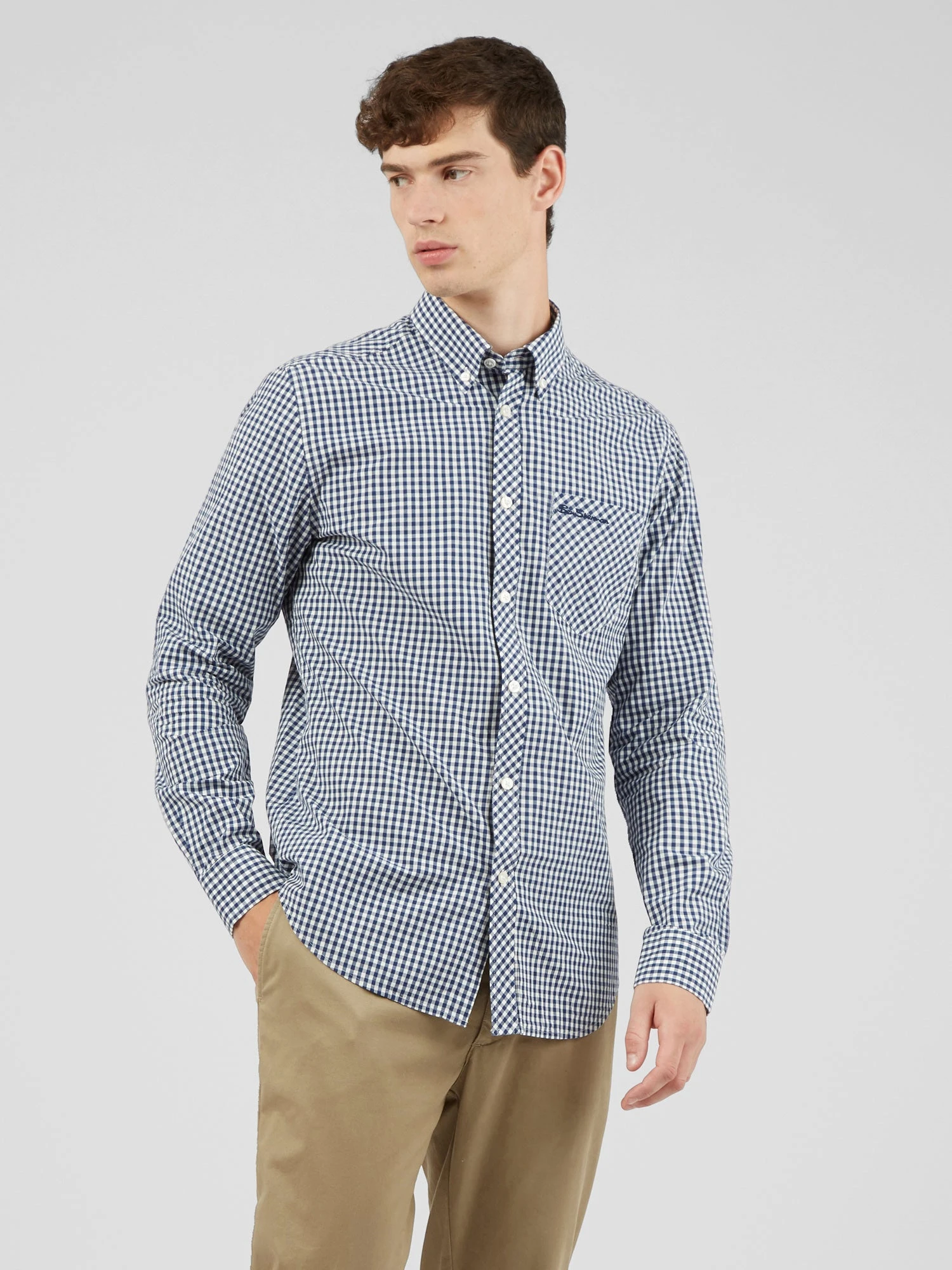 This long-sleeve shirt in our iconic gingham has classic Ben Sherman features, including a two-finger, button-down collar and tab branding. It’s a great staple for smart casual wear. Our regular fit style is finished with a back box pleat for comfort.