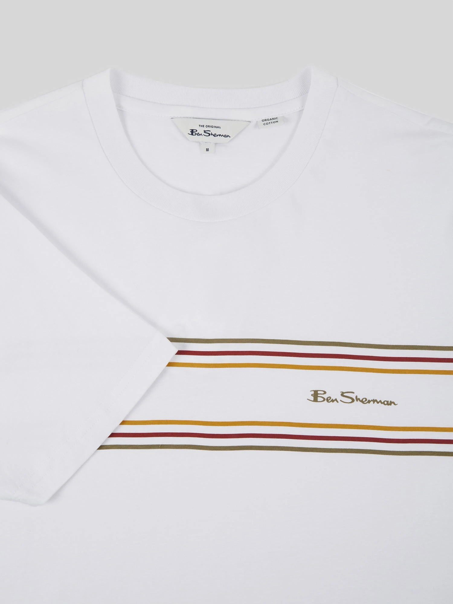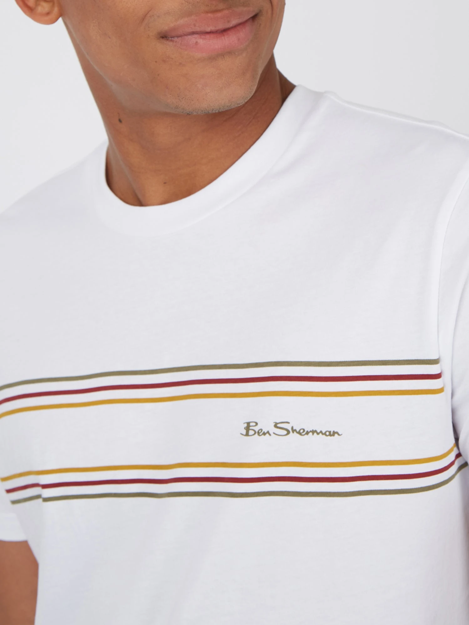 This classic cotton crewneck t-shirt stands out with stripes and a “Ben Sherman” print across the chest.