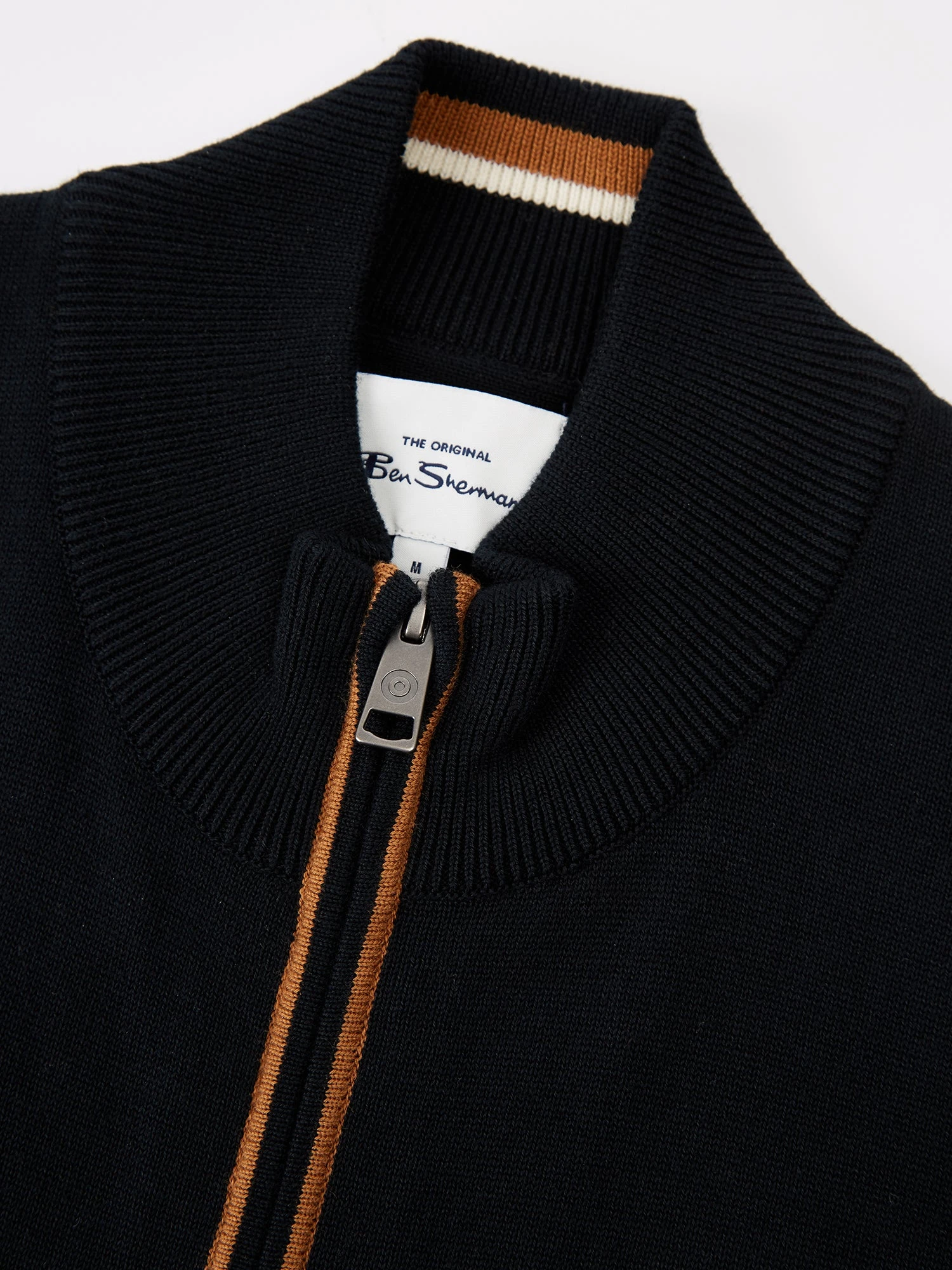 This sports-influenced knitted track top is designed with contrast tipping at the zip, cuffs, and inner neck. An ideal staple for the cooler season, this top features a zip-through fastening and is branded with the Ben Sherman signature chest embroidery.