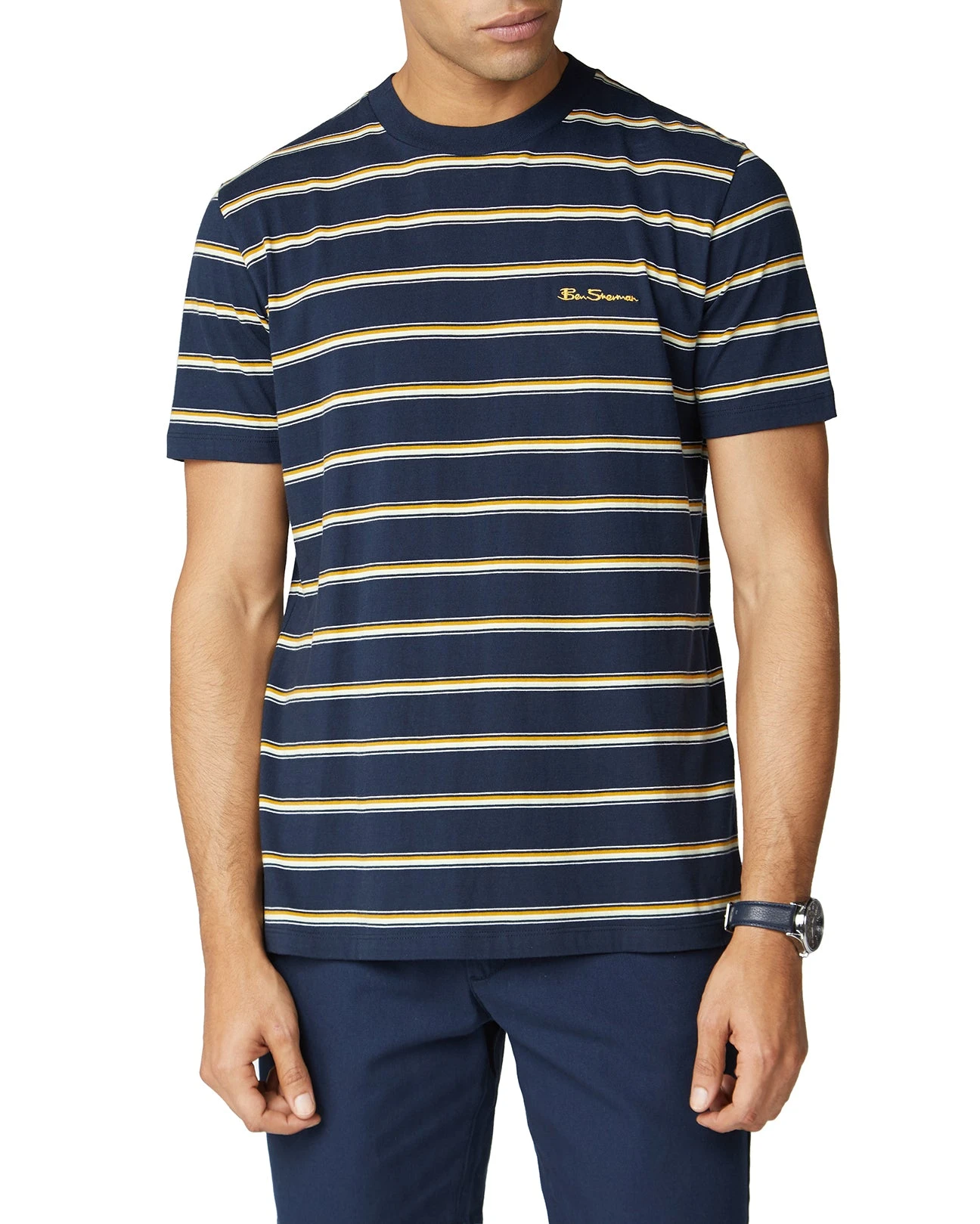 This all-over striped crewneck t-shirt stands out with “Ben Sherman” chest embroidery.