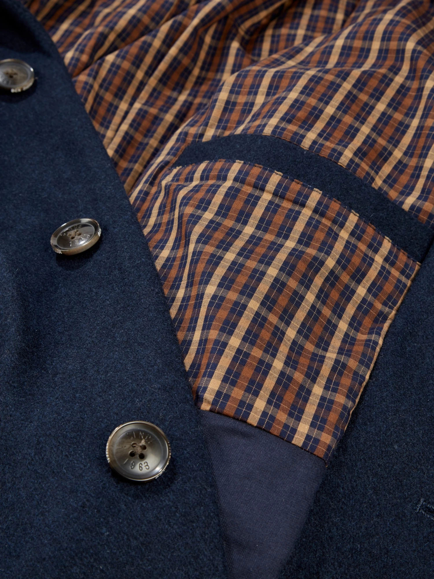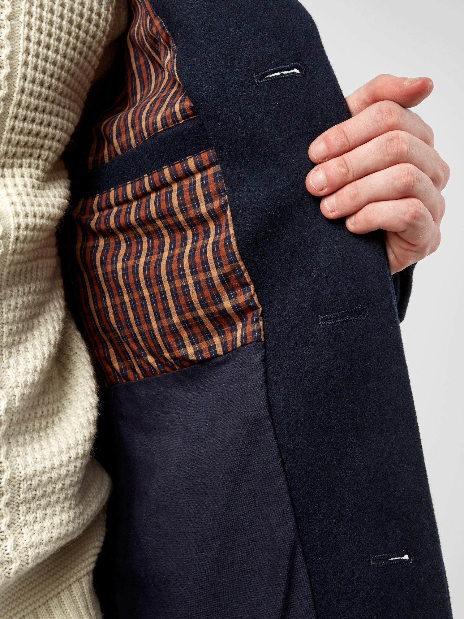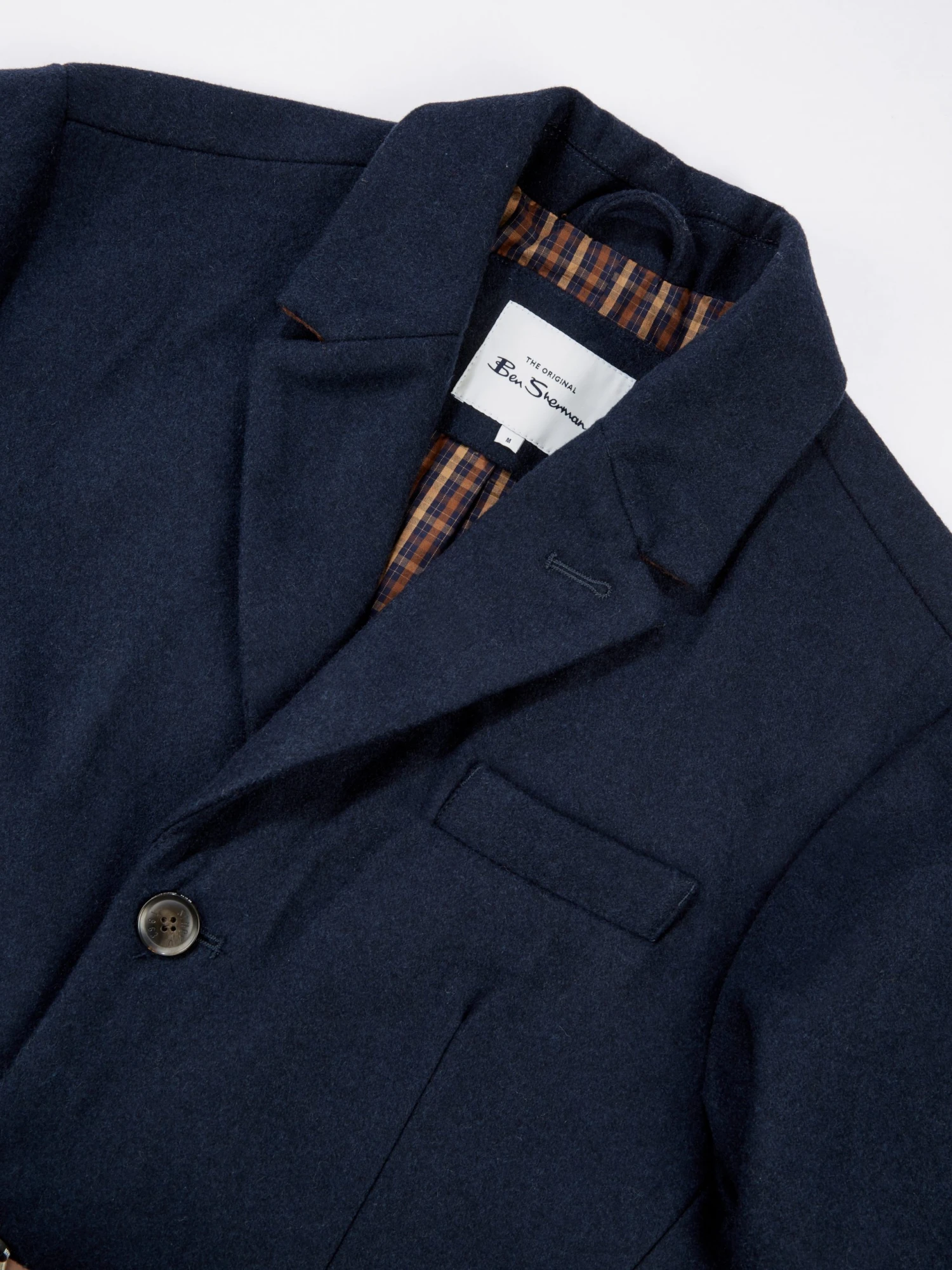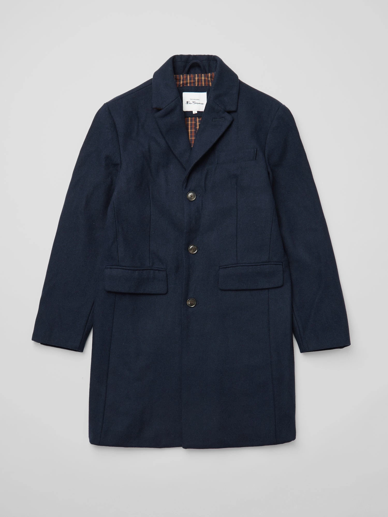 This modern single-breasted overcoat is constructed from a wool-blend fabric and features house-check lining and a three-button fastening.
