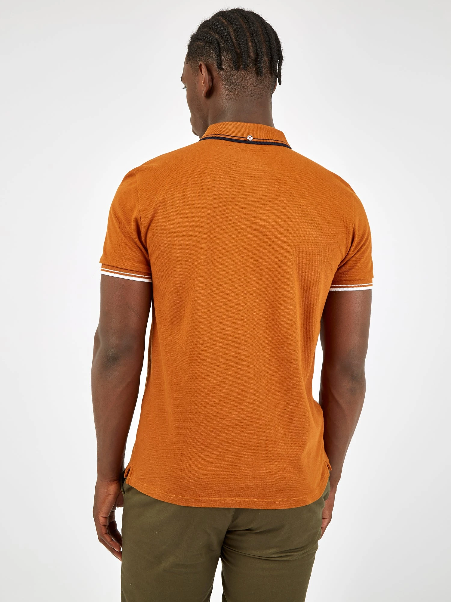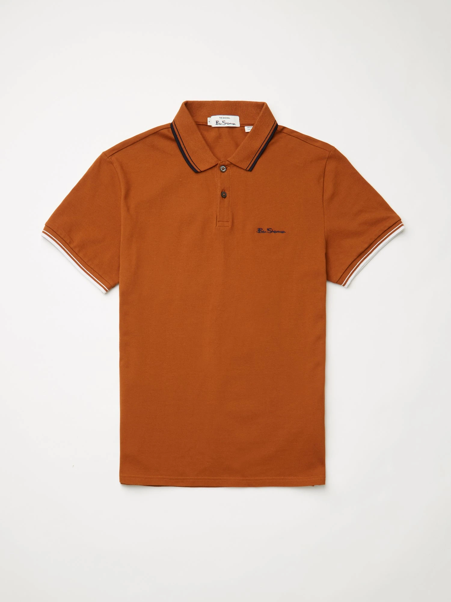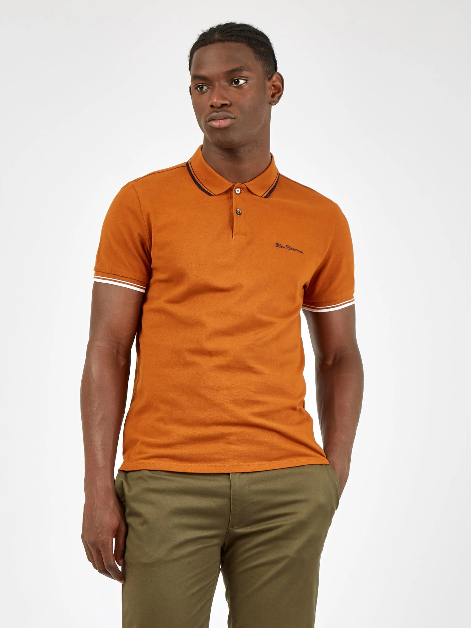 Our signature polo is a classic men’s cotton polo with contrast tipped detailing on the collar and cuffs. The polo is made with organic cotton and features a two-button fastening and a flat knit collar.