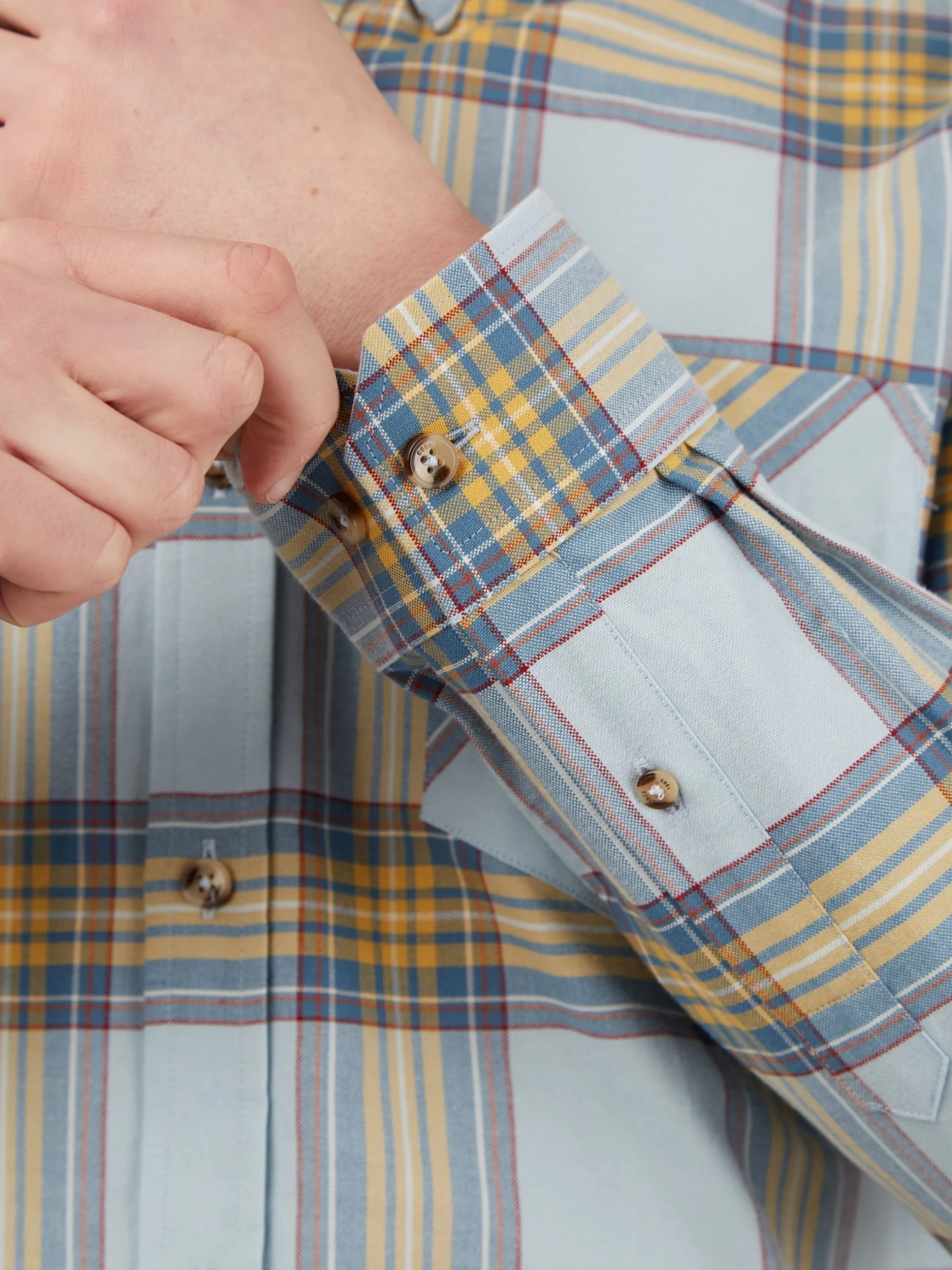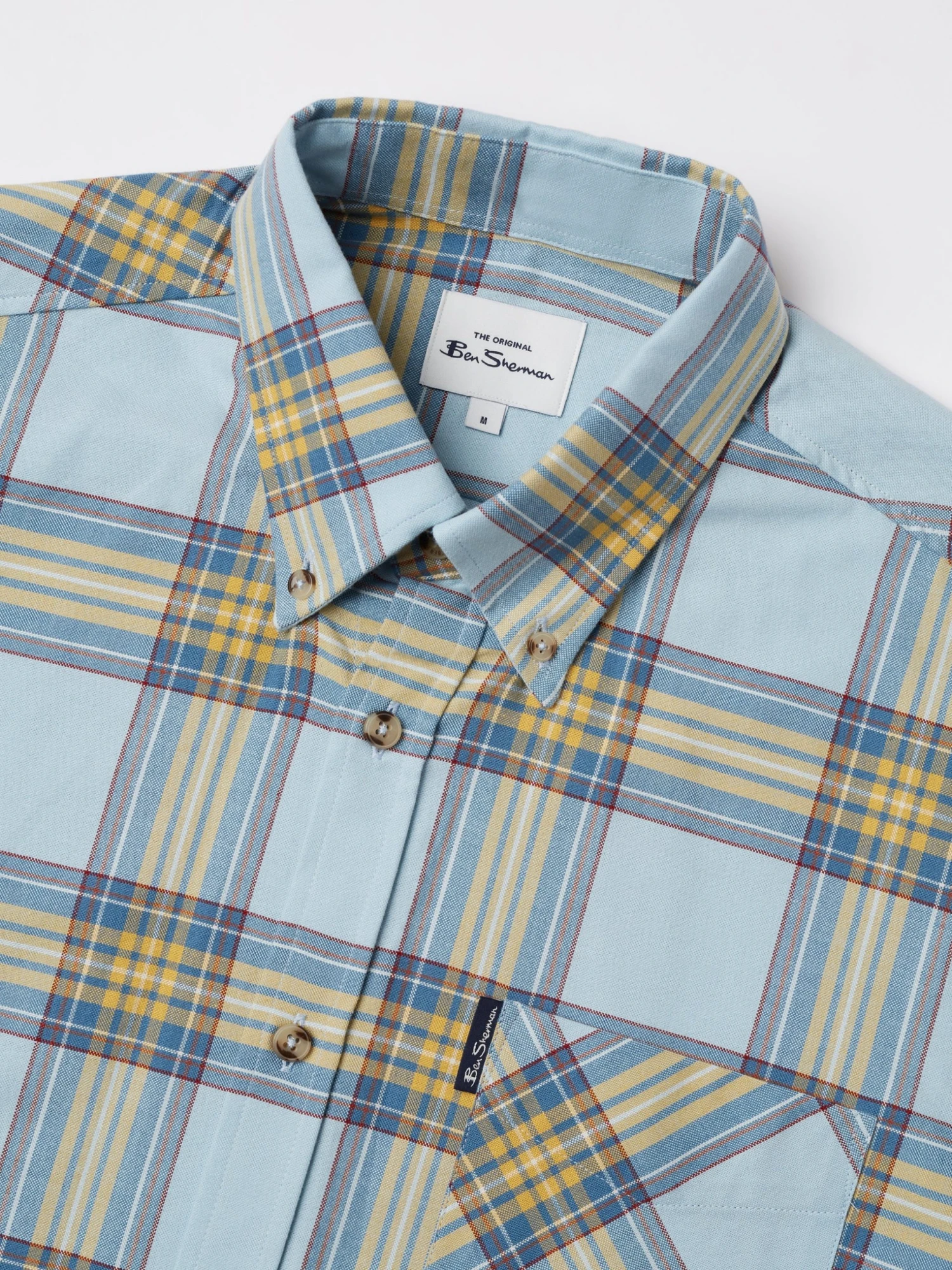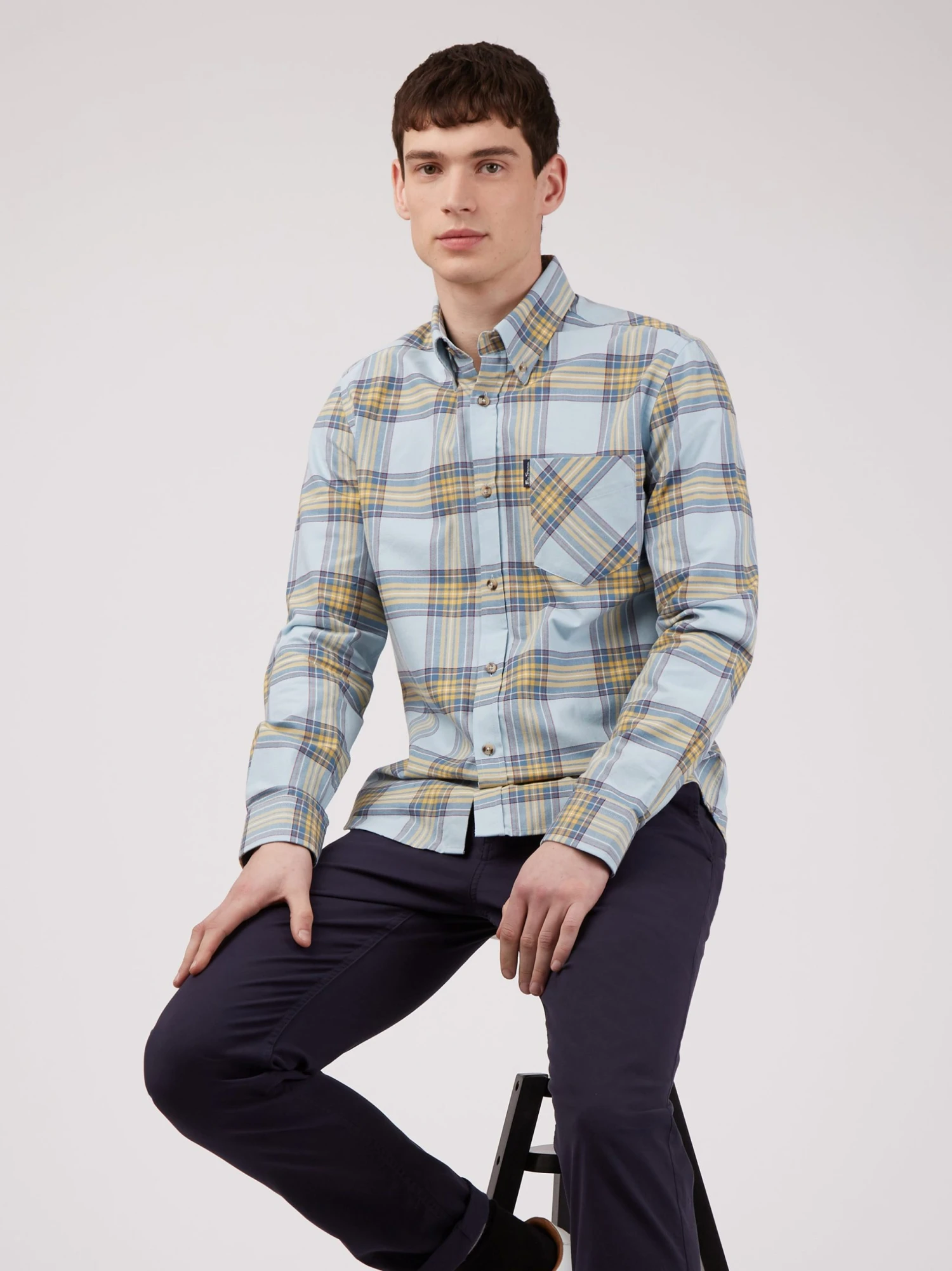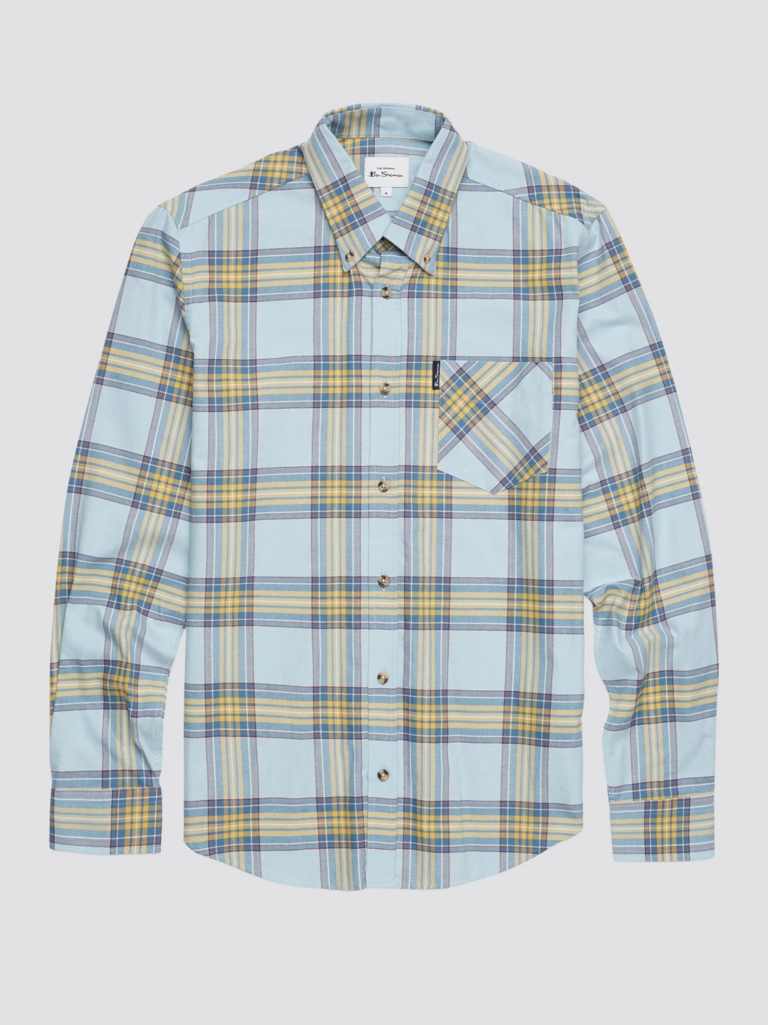 A long sleeve shirt designed in a tartan check that comes in a regular fit and features a 3 finger button down collar. Complete with a patch pocket at the chest and branded with the Ben Sherman woven pocket tab. Made from 100% cotton.
