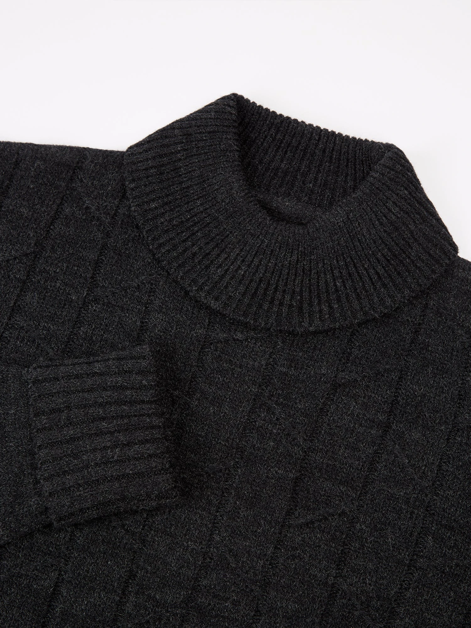 This wool-blend, chunky-knit roll-neck crewneck jumper is designed with diagonal textured knit to the front and is branded with the Ben Sherman side-tab label. Ribbed hem and cuffs complete the look.