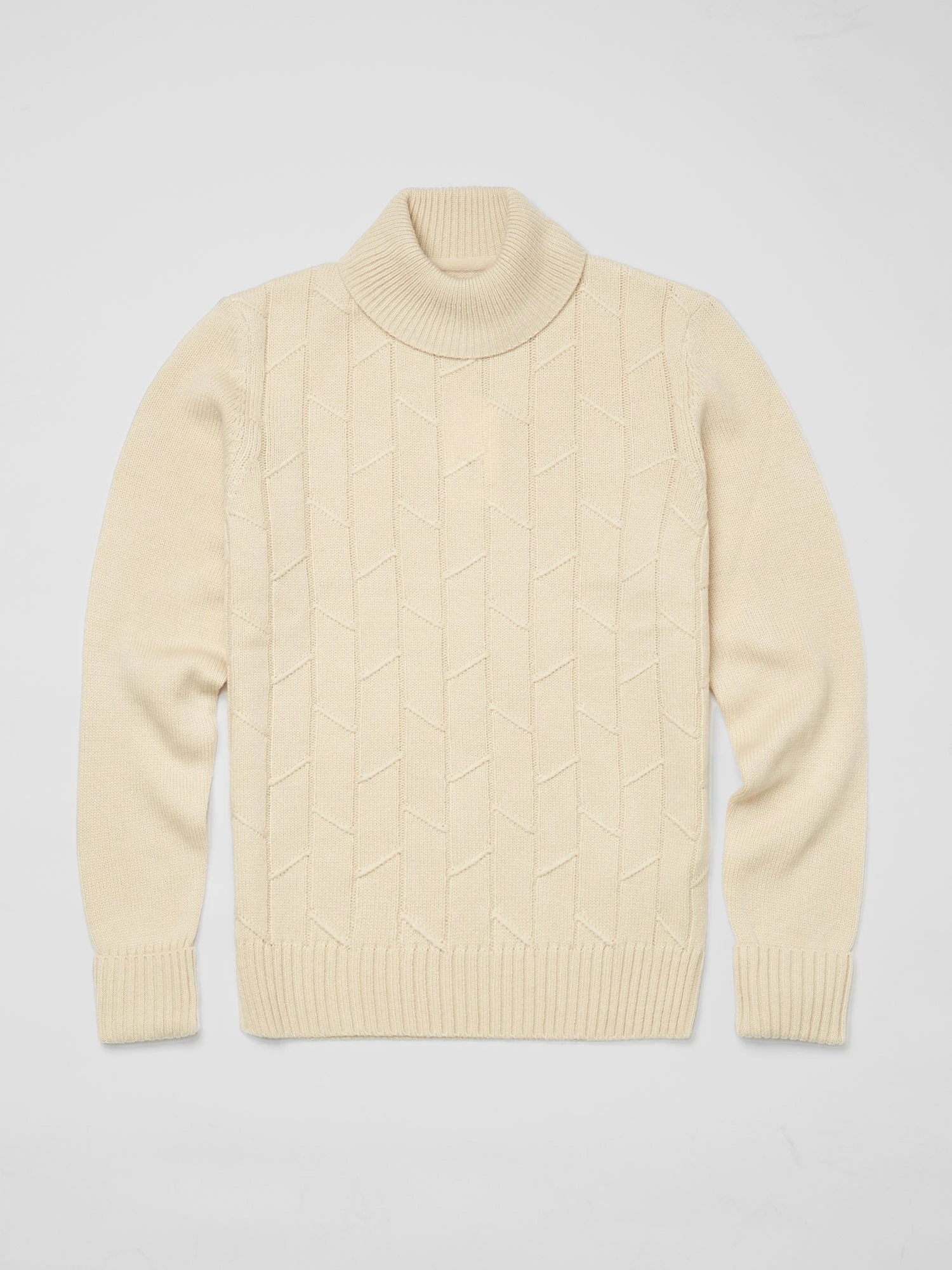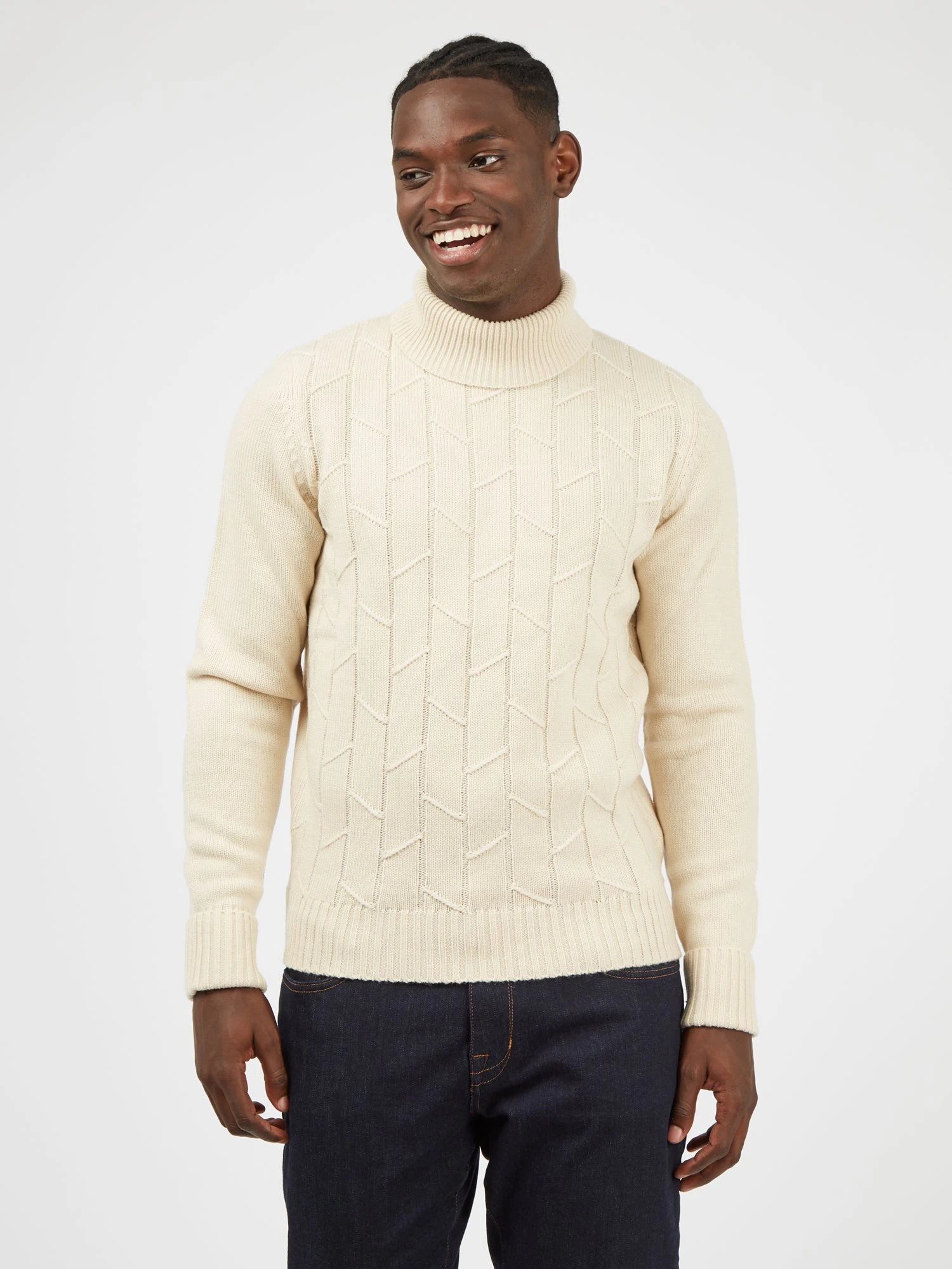 This wool-blend, chunky-knit roll-neck crewneck jumper is designed with diagonal textured knit to the front and is branded with the Ben Sherman side-tab label. Ribbed hem and cuffs complete the look.