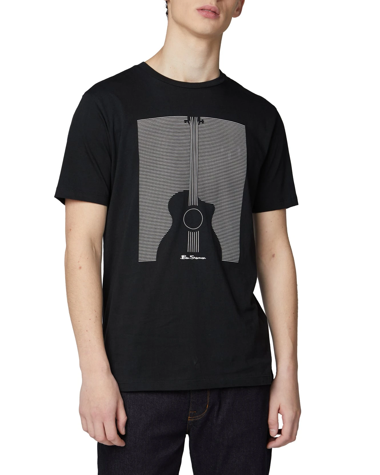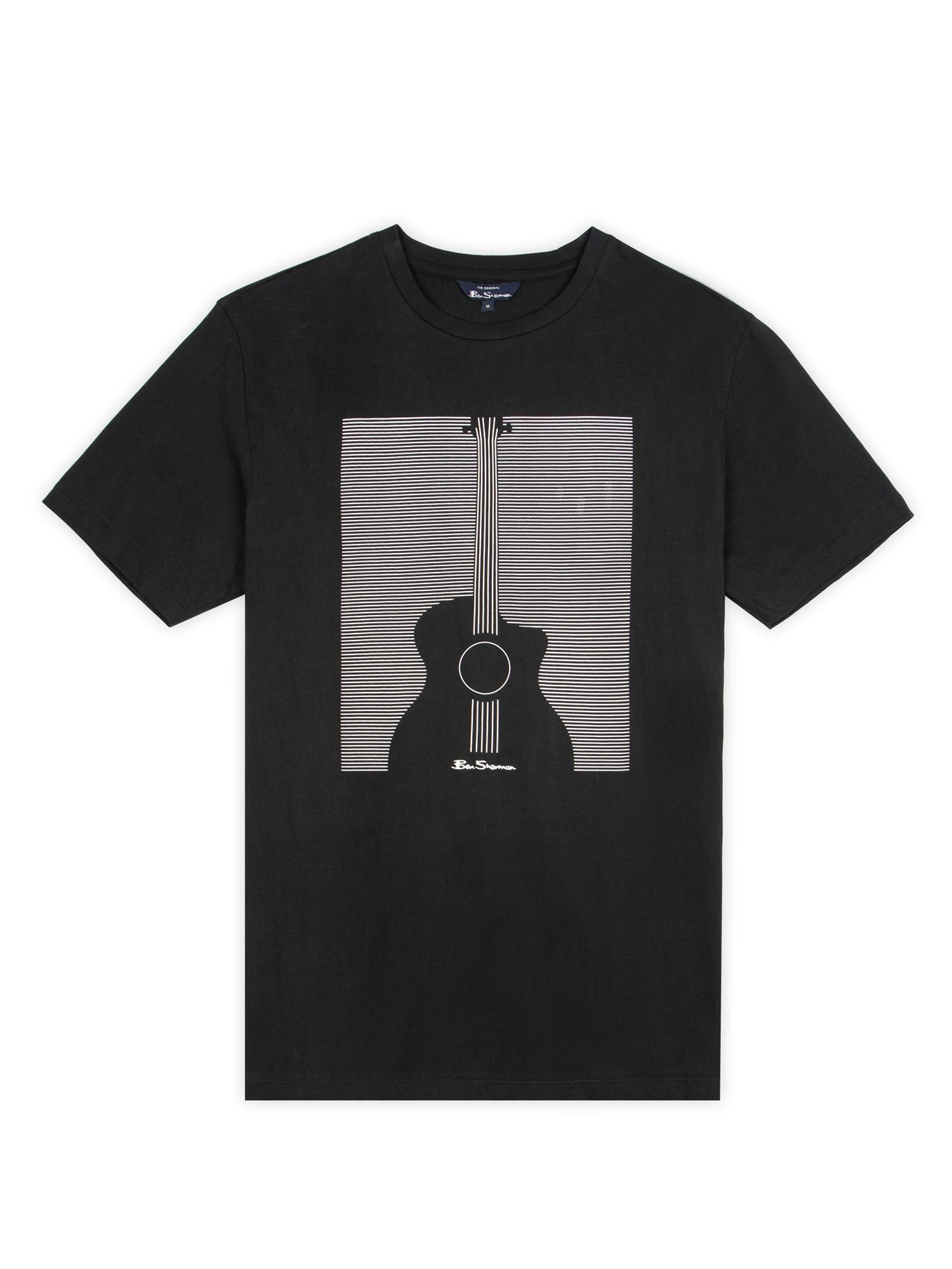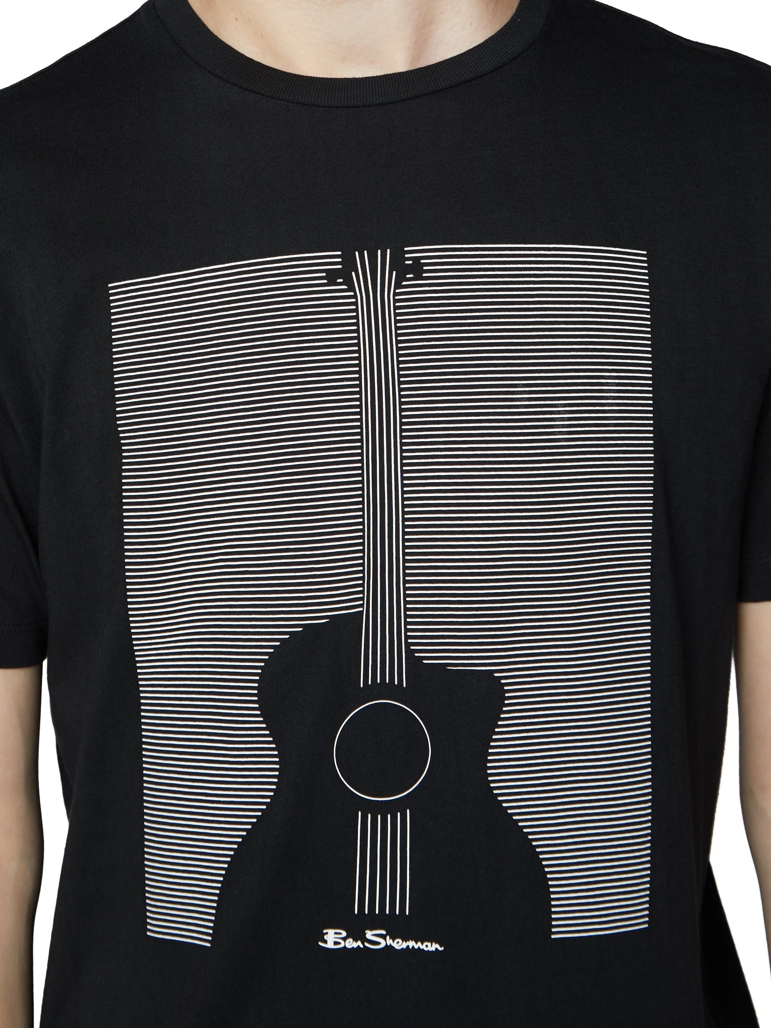 This classic cotton crewneck t-shirt features a raised guitar print.