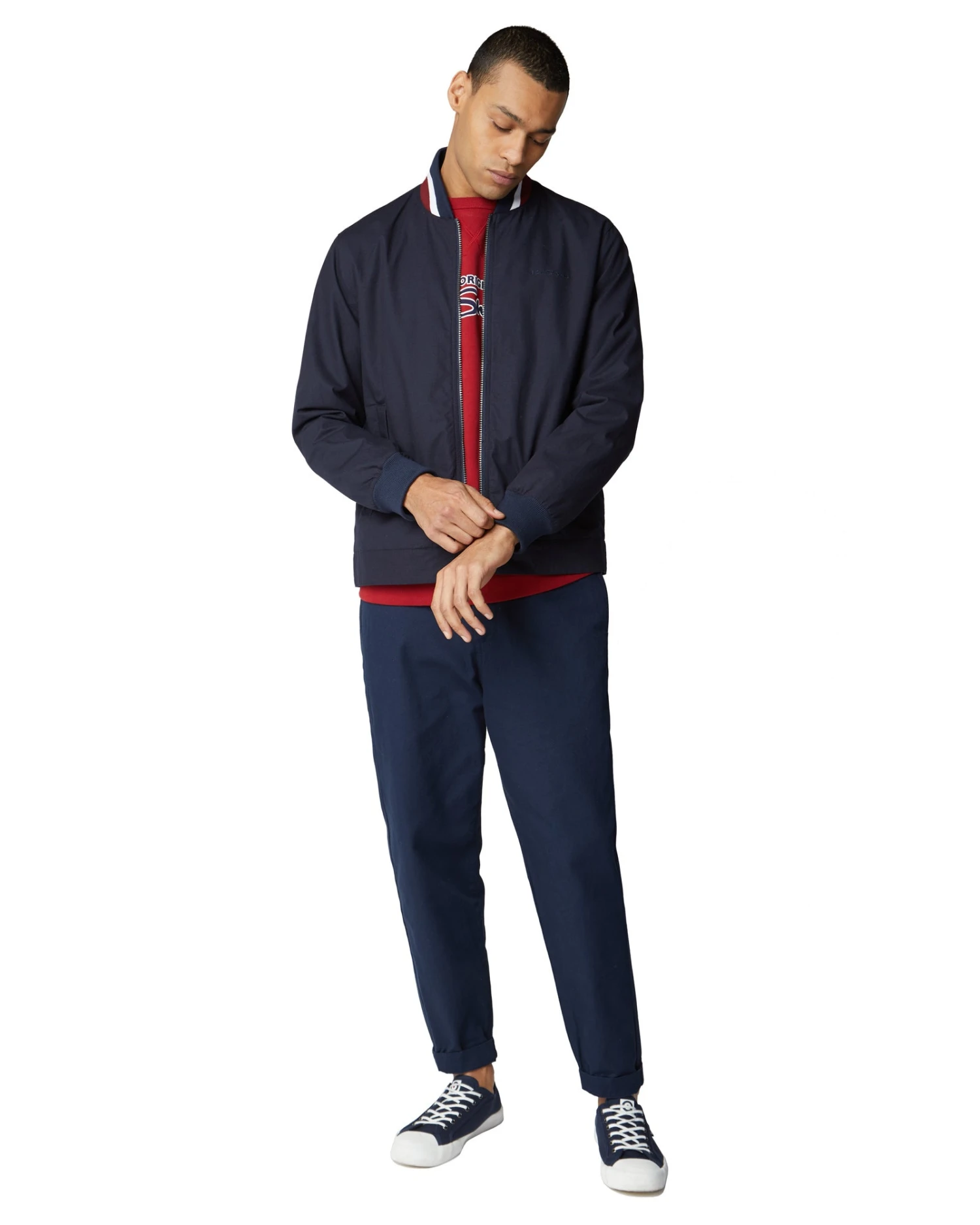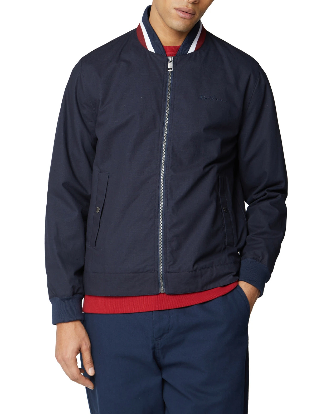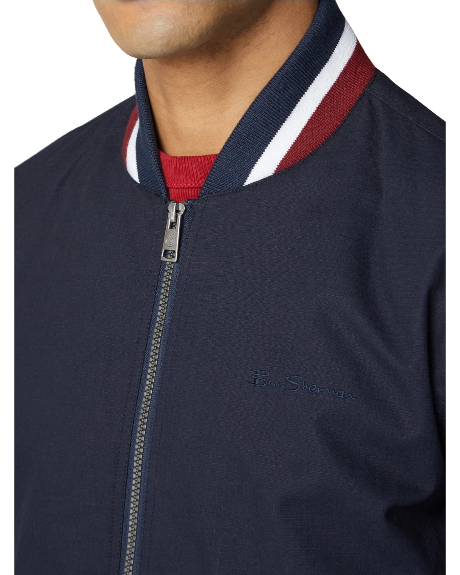 This classic bomber jacket features a jersey rib collar and cuffs and is complete with embroidered Ben Sherman branding on the front.