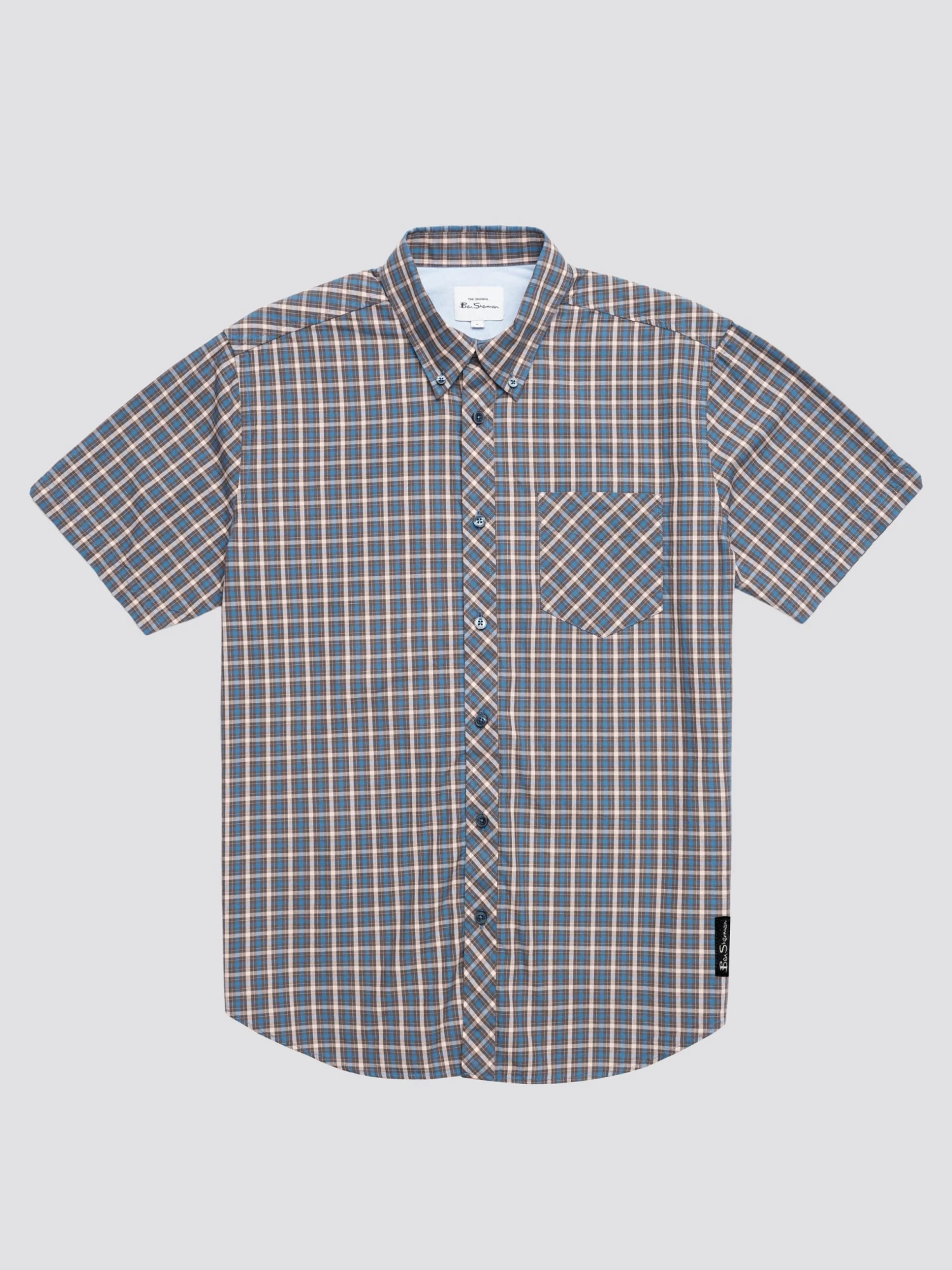 From our core collection, our original check shirt is a modern classic. Cut from a lightweight checkered fabric, this shirt is styled with a two-finger, button-down collar and tab branding.