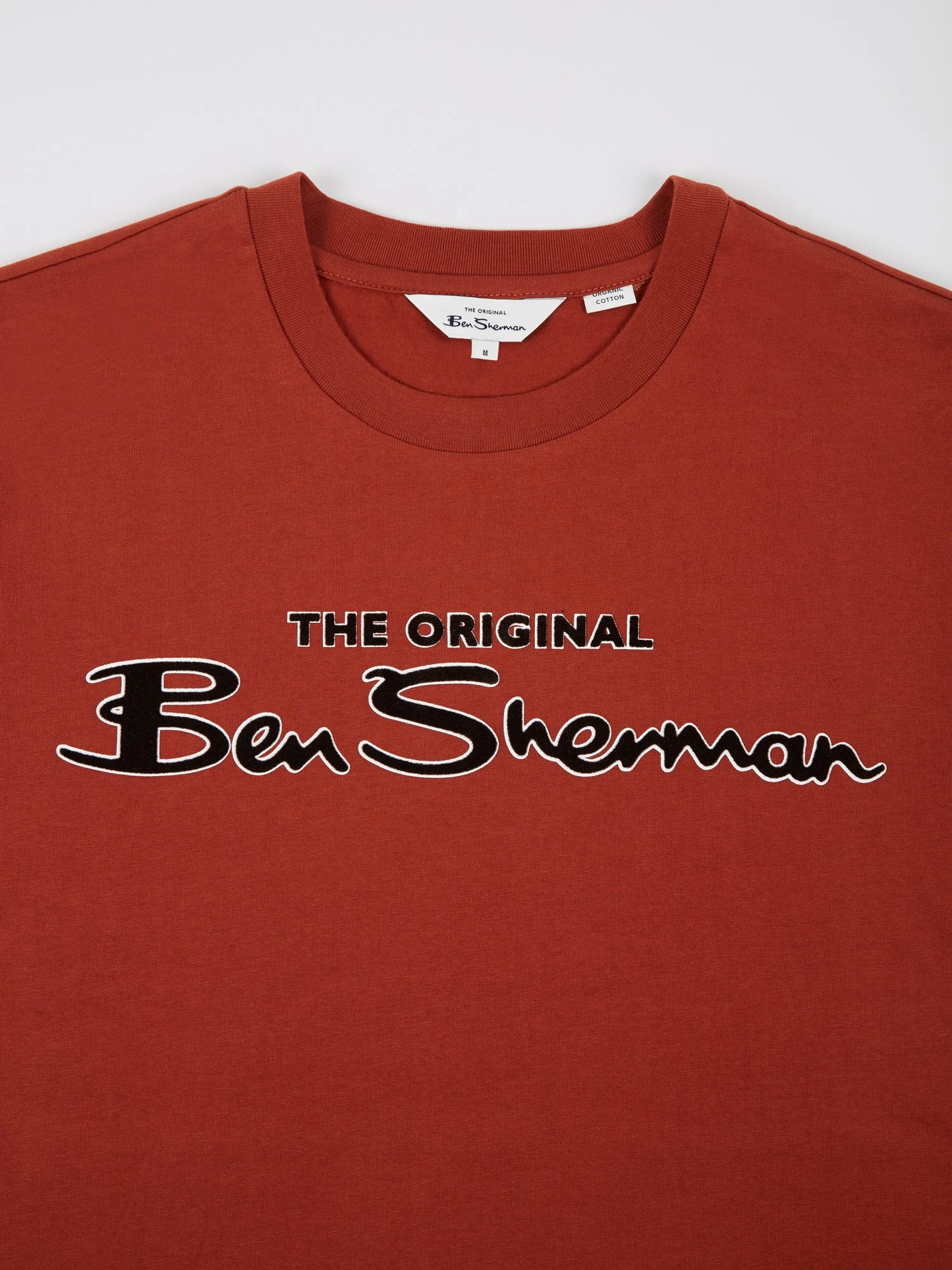 This 100% GOTS-certified organic cotton jersey graphic tee in a regular fit features our signature “Ben Sherman” logo in a flock print.