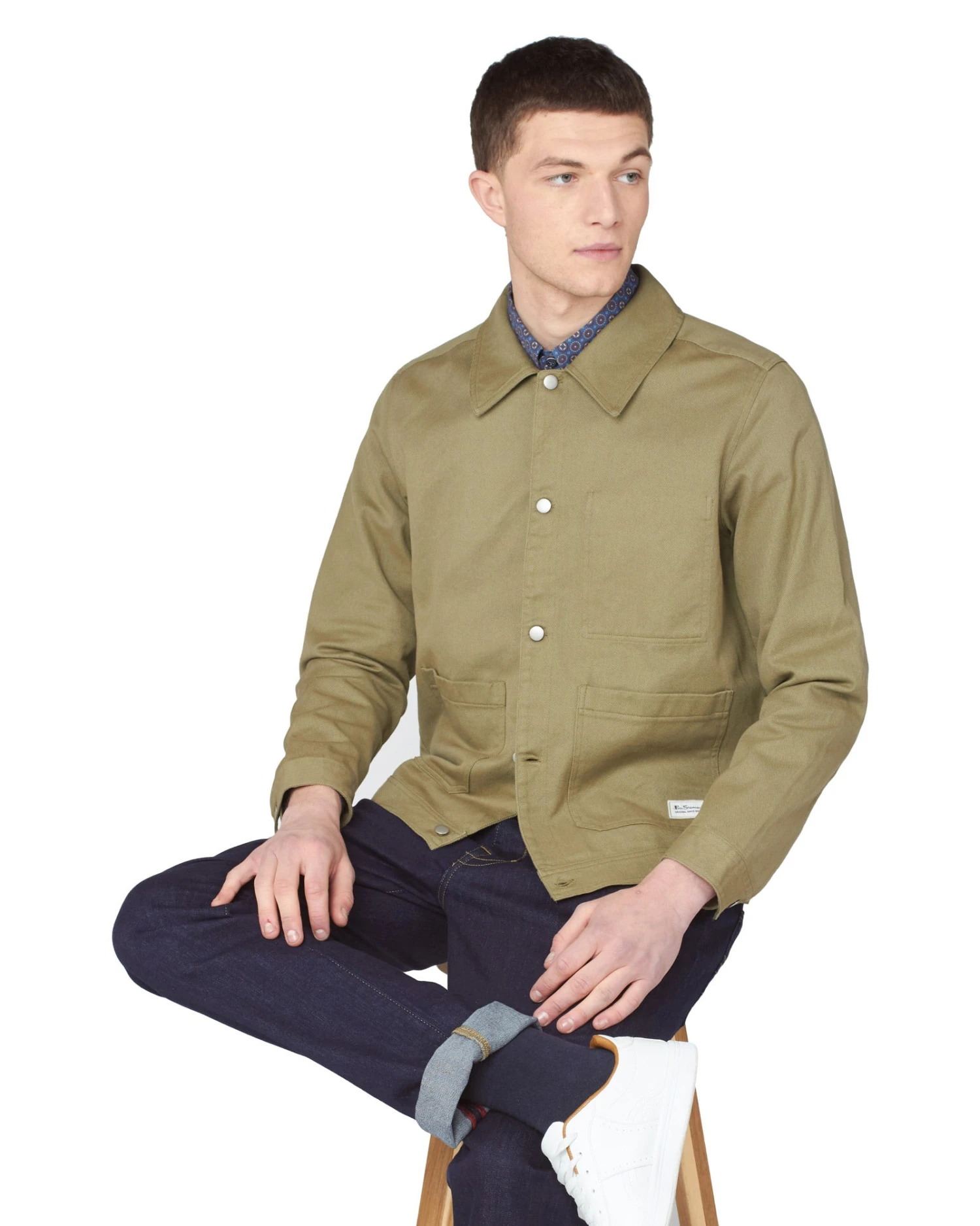 This trucker jacket in a regular fit features button-up fastening with five matte-silver buttons, two center-front pockets, a profile stitch pocket for design, and a Ben Sherman woven badge.