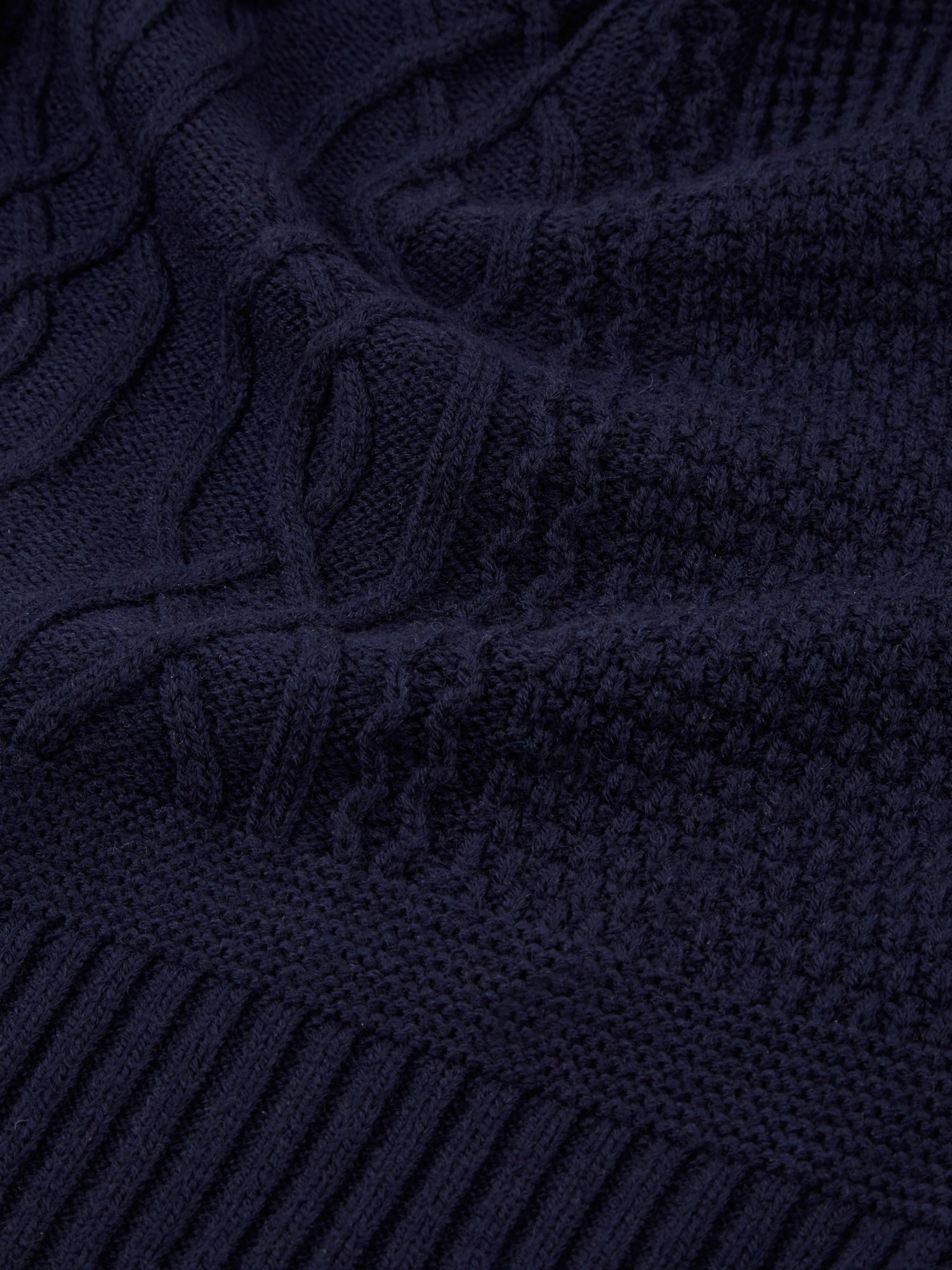 • Multi-textured cable-knit front
