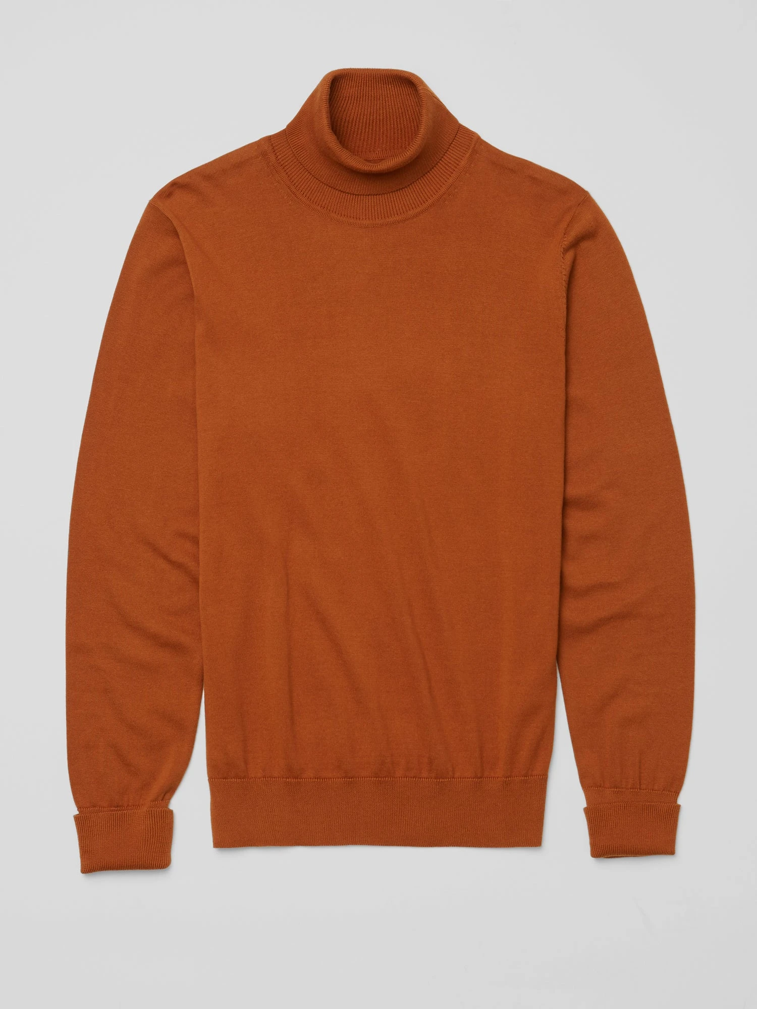 Our signature knitted roll-neck jumper is constructed from 100% organic cotton and a comes in a regular fit. This sweater is branded with the Ben Sherman side-tab label.