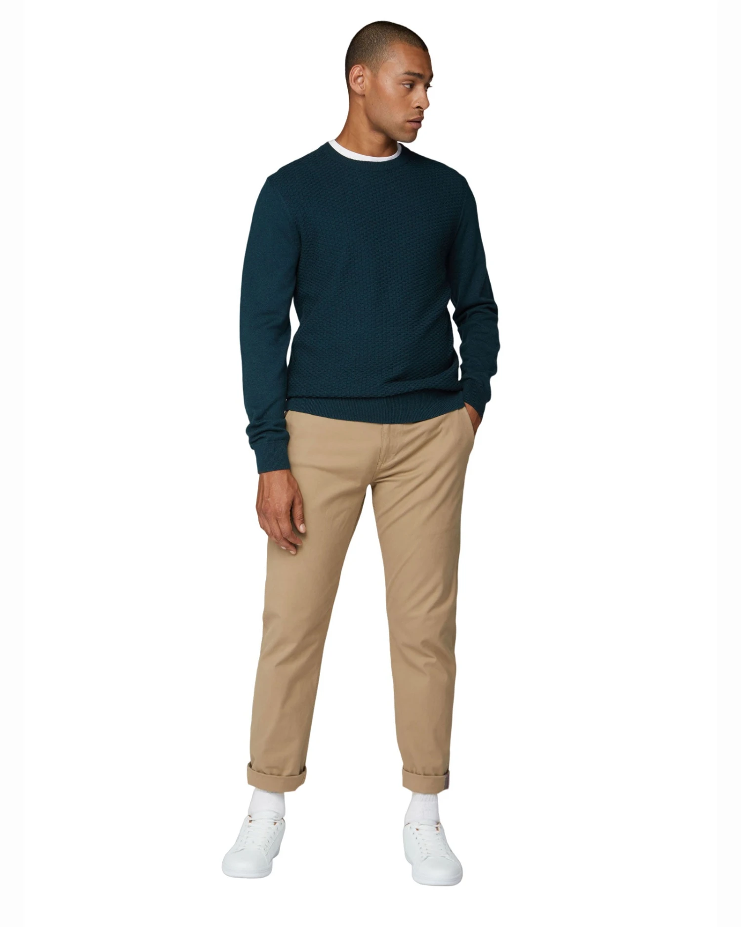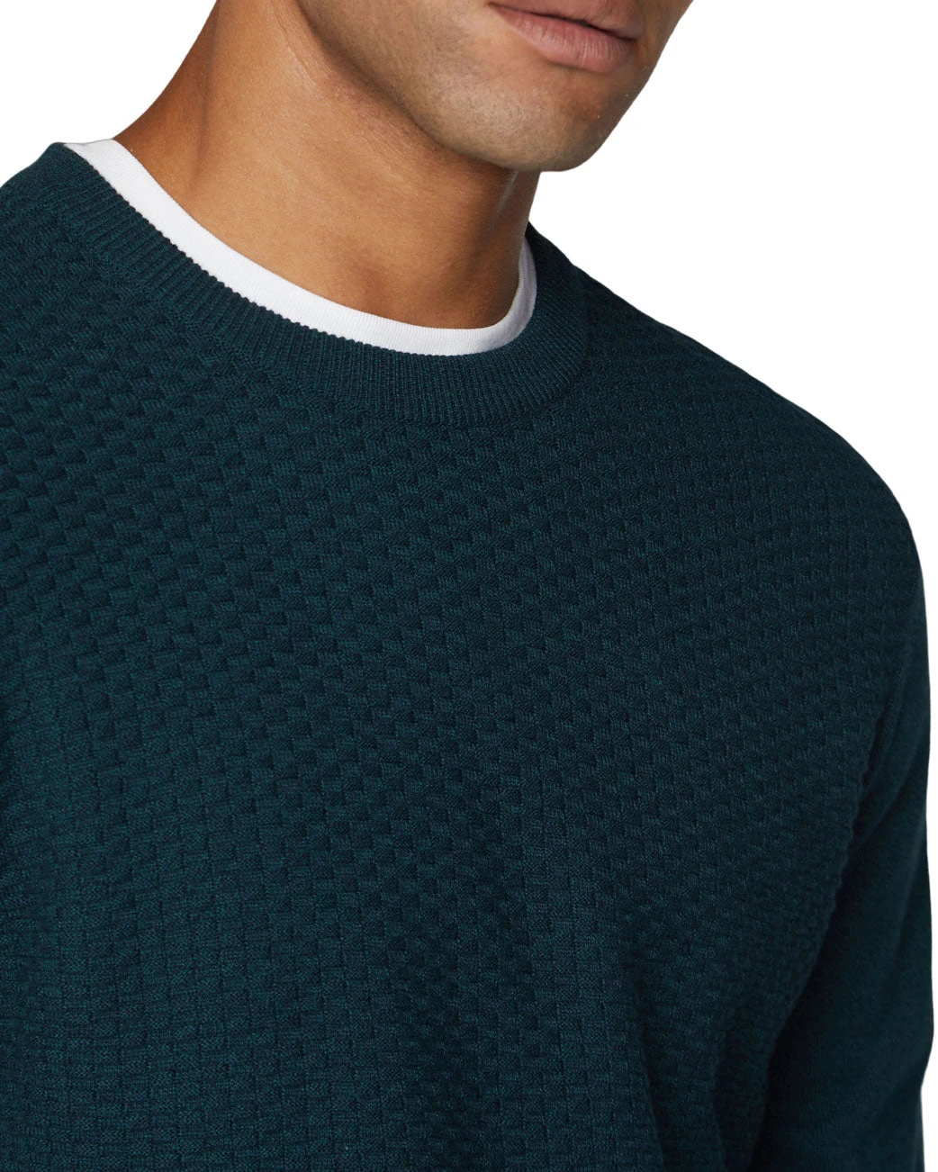 This crewneck jumper is set apart with a textured-knit front panel design.