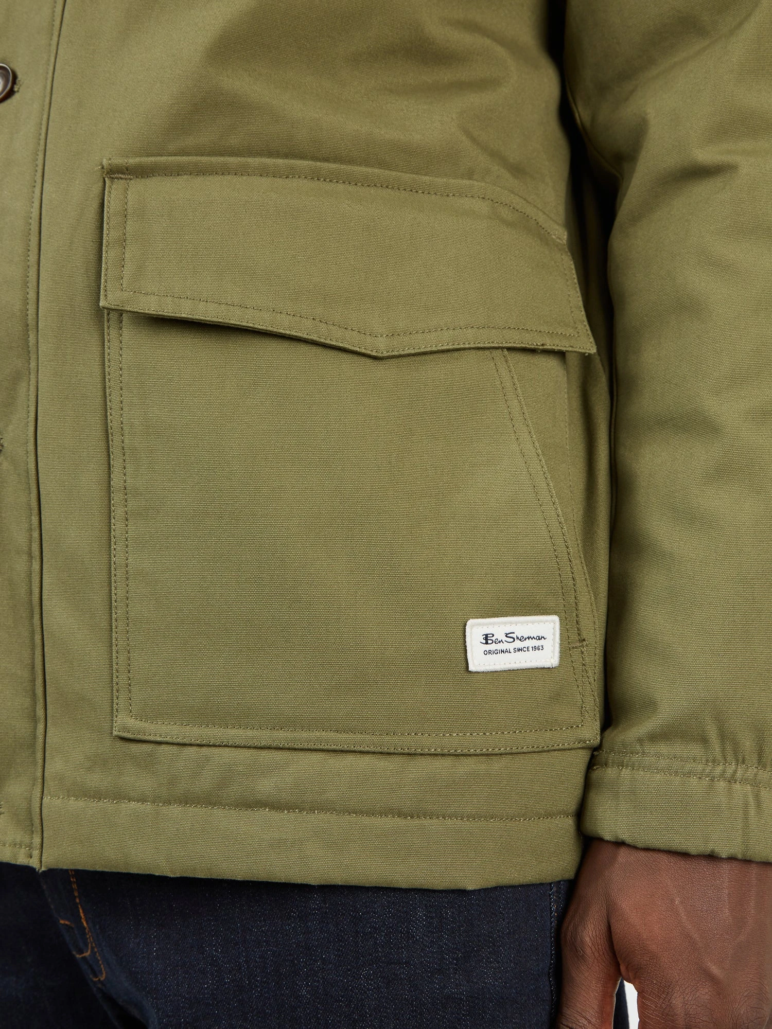 A workers coat in a regular fit, this jacket features a water-resistant-finished fabric; wadded, quilted lining; three external pockets; and a removable borg collar.
