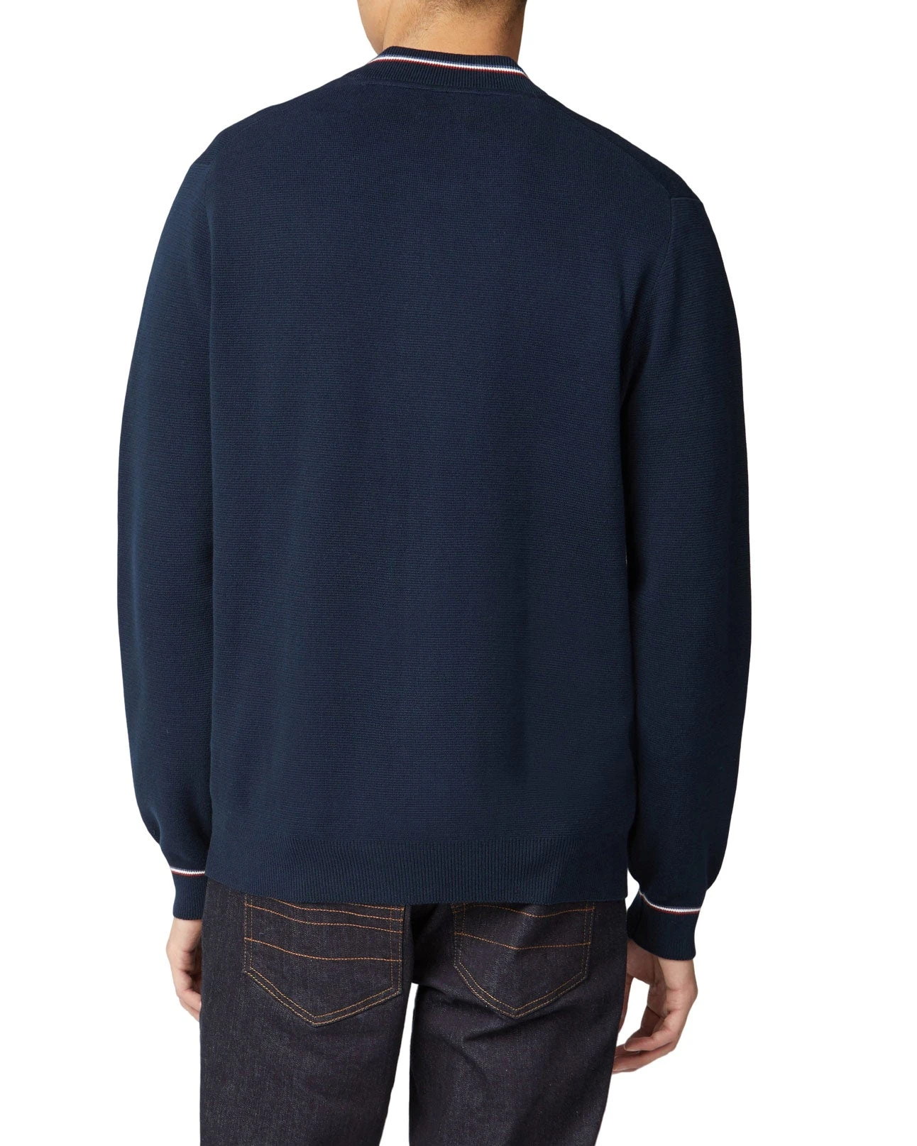 Part jacket, part sweater, our knit bomber is a layering must-have for the season. The style features contrast tipping on the collar and cuffs that complement a striped detail along the full zip front.