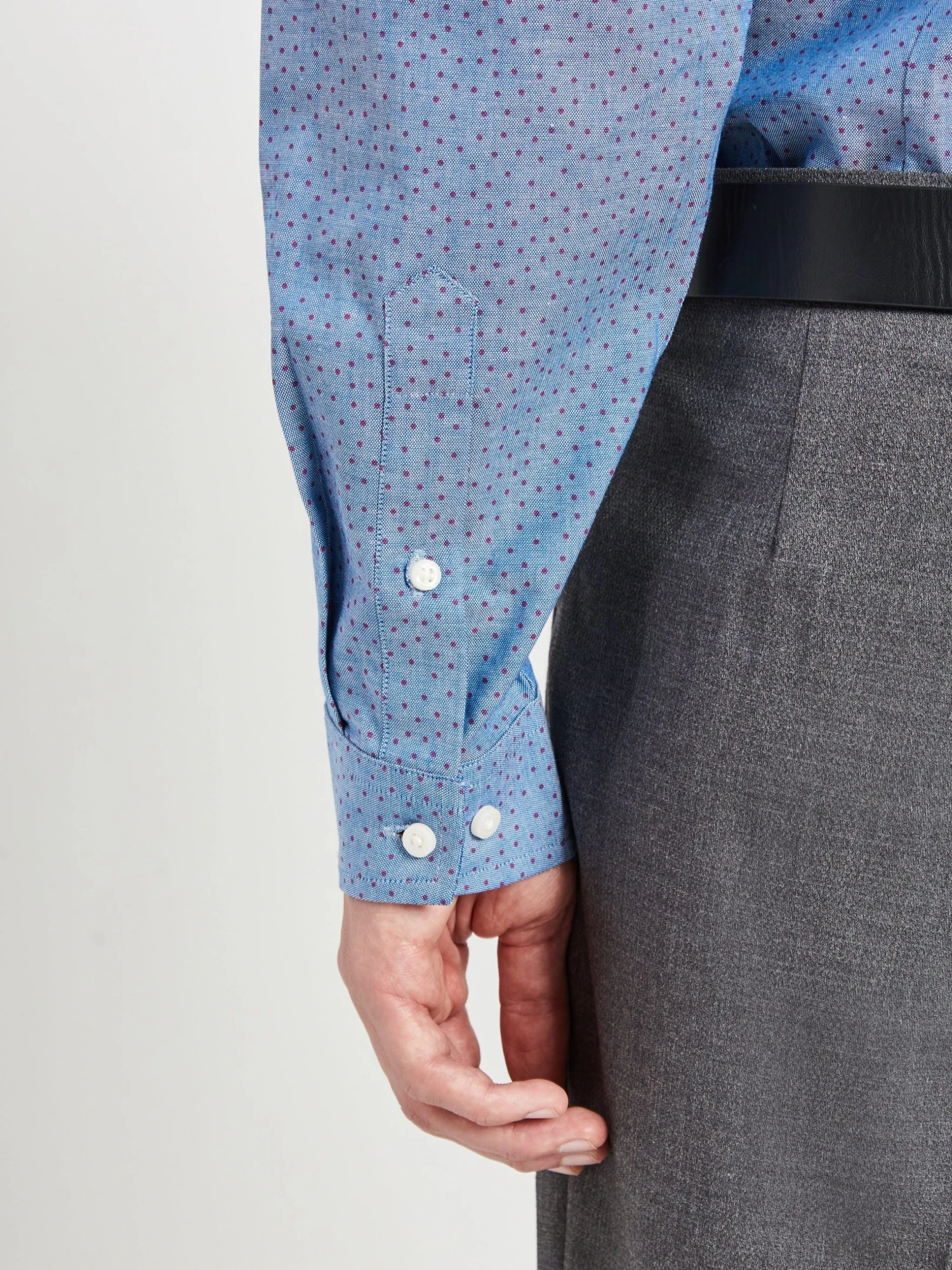 - Two-finger button-down collar