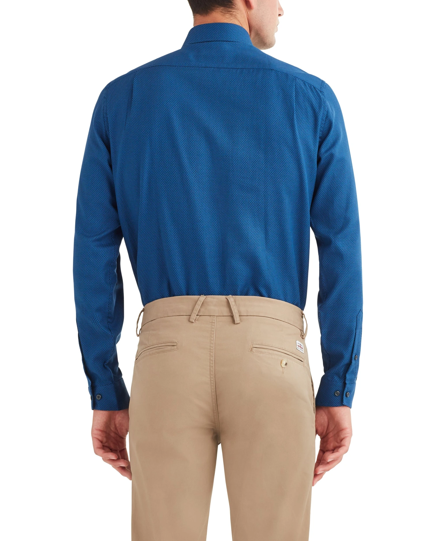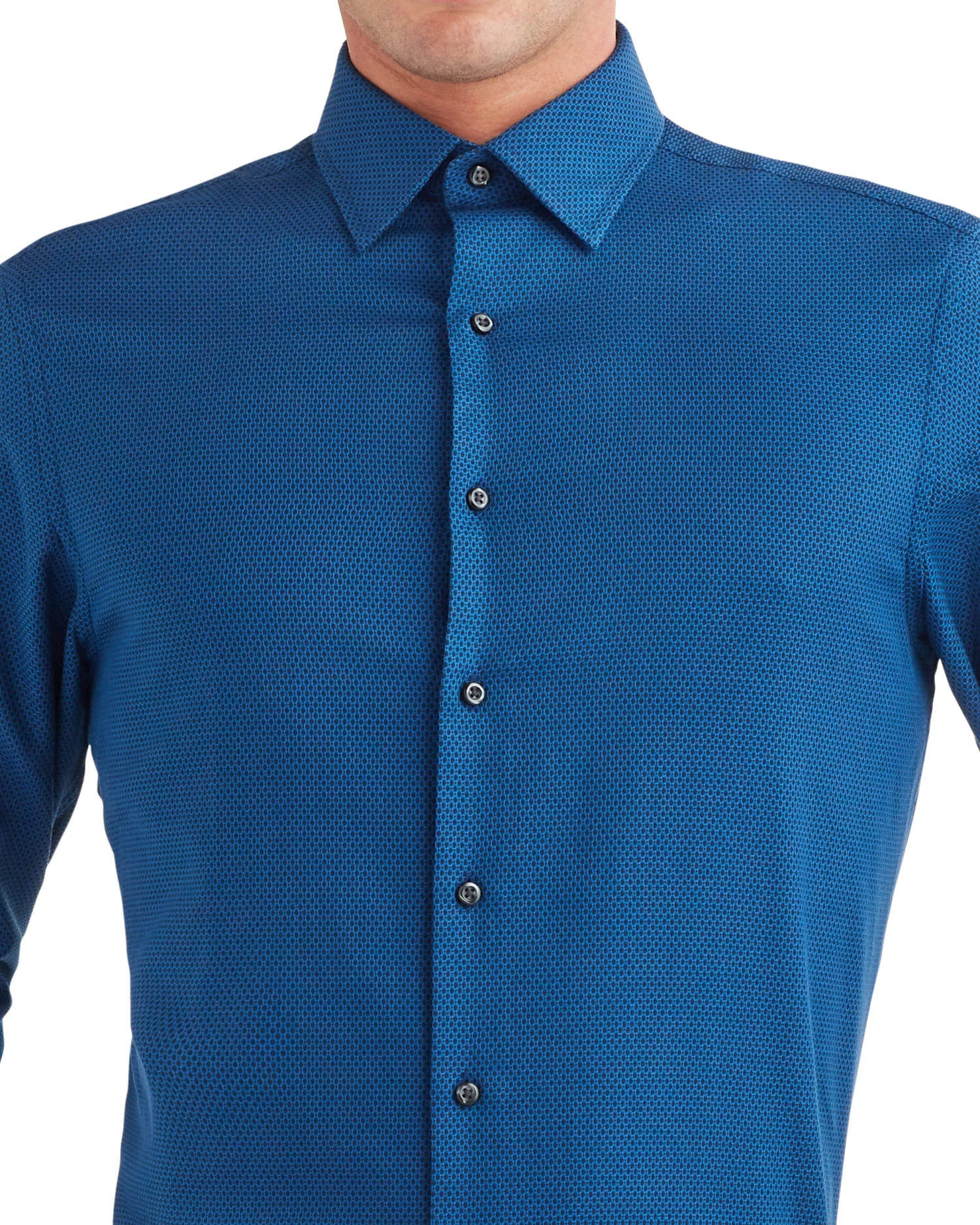 The Navy & Blue Dobby Texture Dress Shirt is cut to a slim fit with 100% cotton and dobby texturing. The elevated classic pairs effortlessly with any of our tailoring pieces.