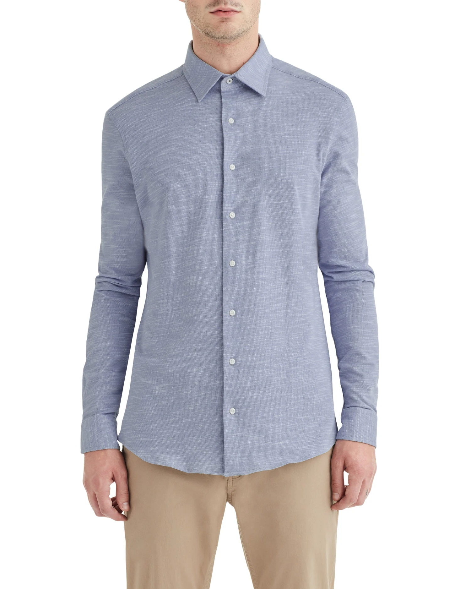 The Grey Slub Knit Slim-Fit Dress Shirt features a fine knit detail. Cut to our King’s slim fit in 100% cotton.