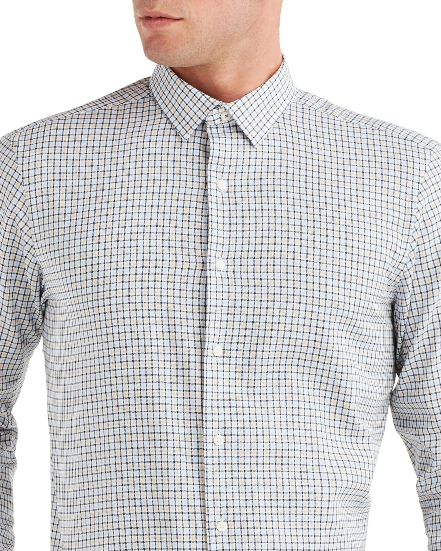 The Gold & Blue Herringbone Check Dress Shirt is cut to a slim fit in comfortable, breathable 100% cotton. The stylish herringbone-check print is a classic with a contemporary update.
