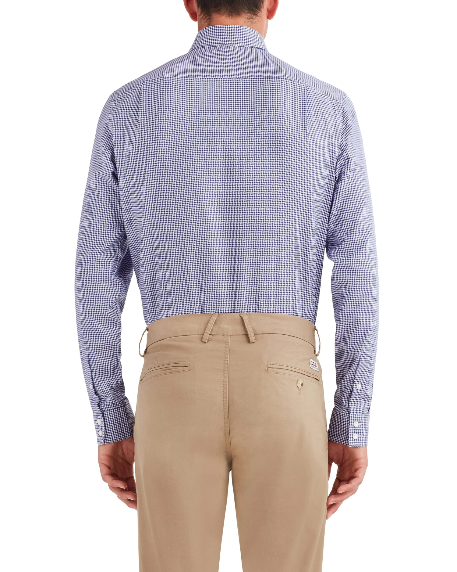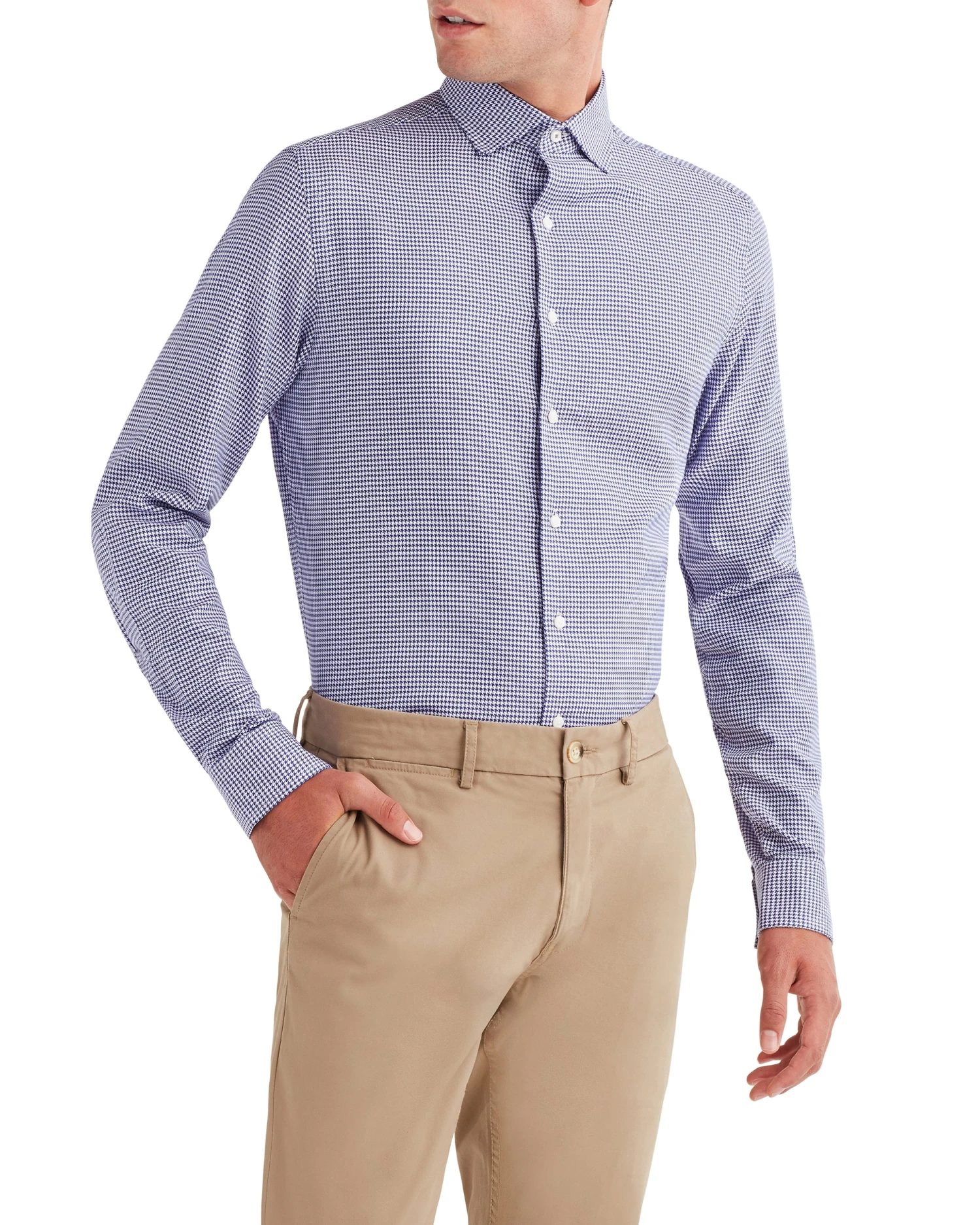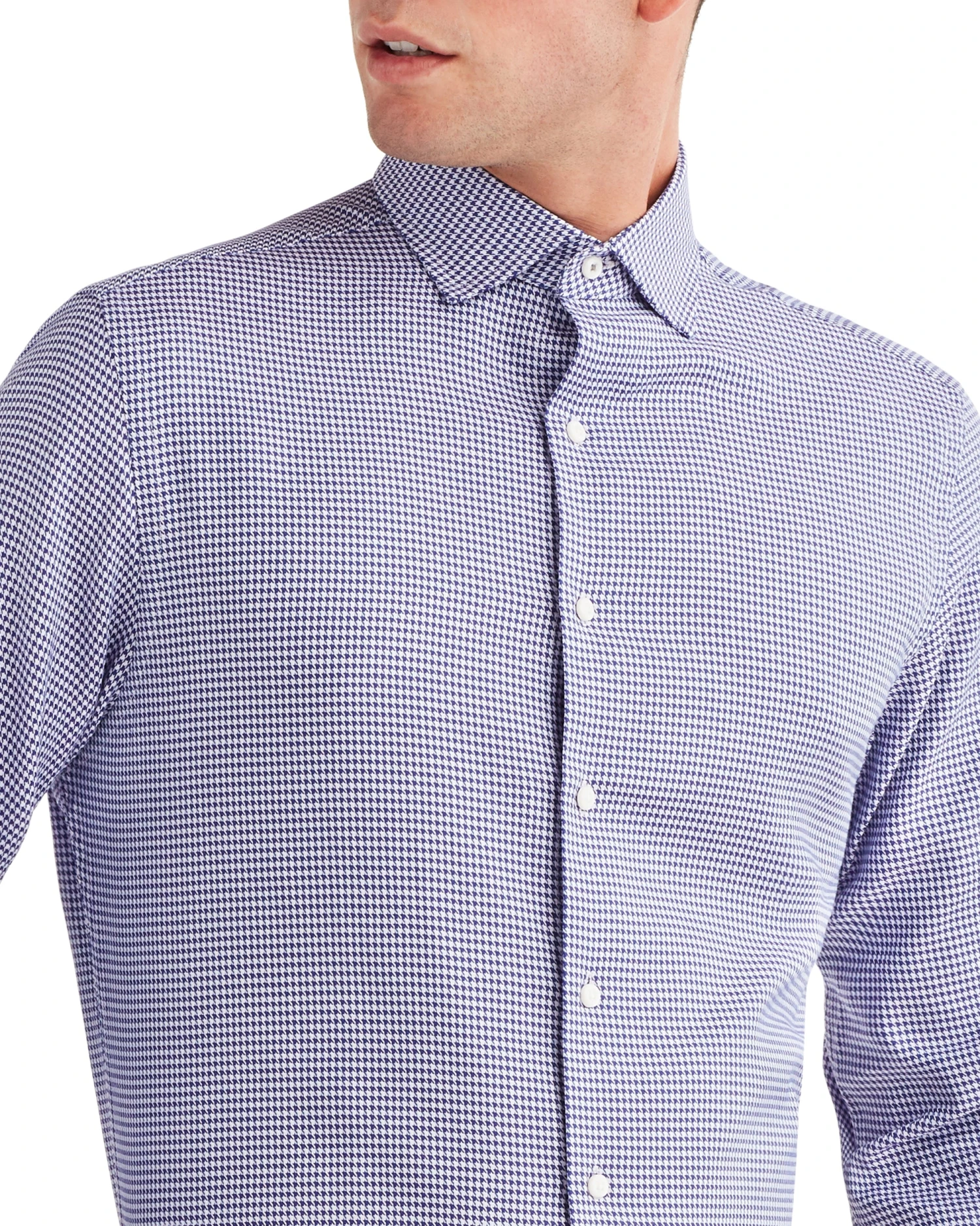 The Purple Houndstooth Dress Shirt adds a layer of sophistication to your tailored look. The dress shirt is cut to a slim fit in 100% cotton.