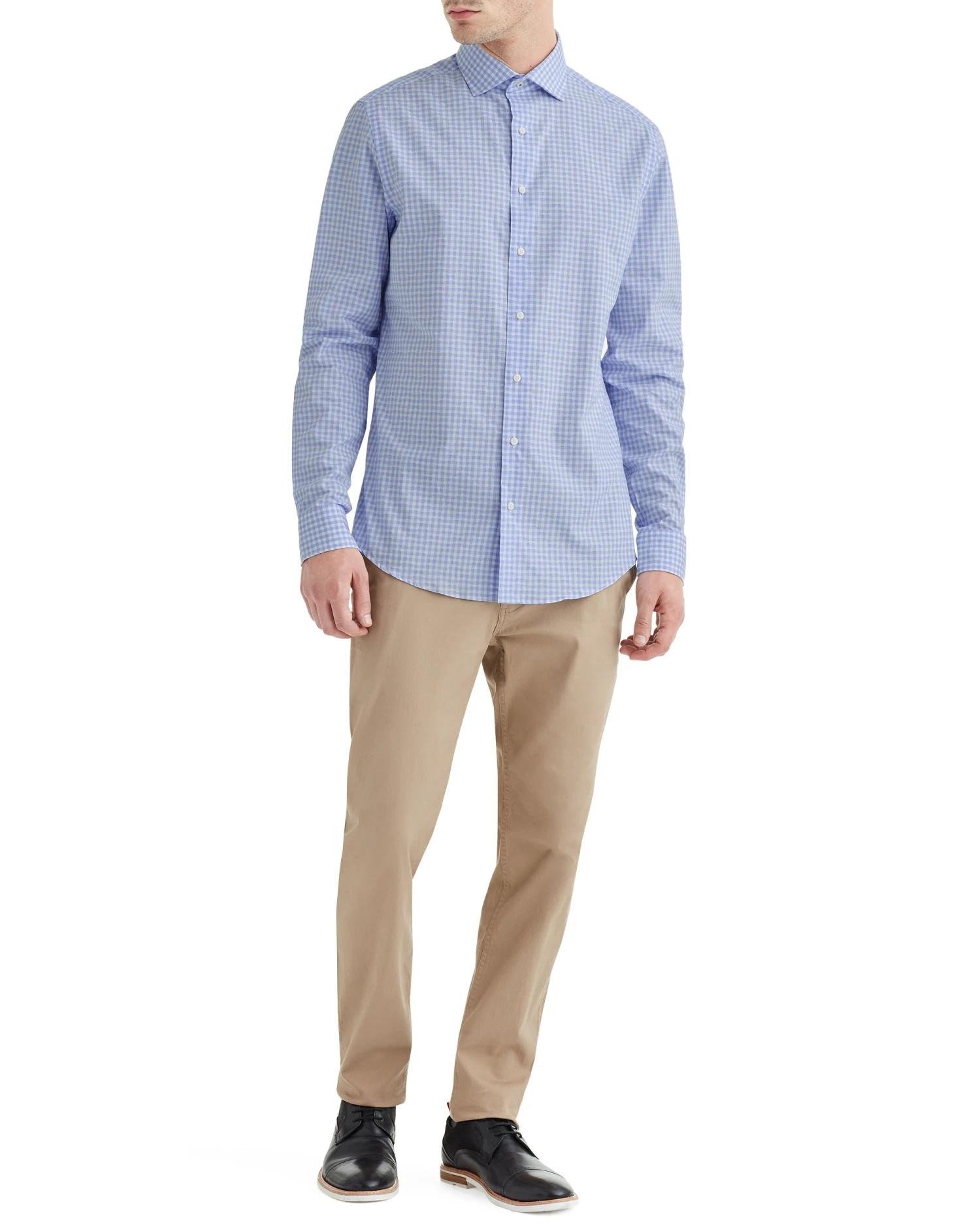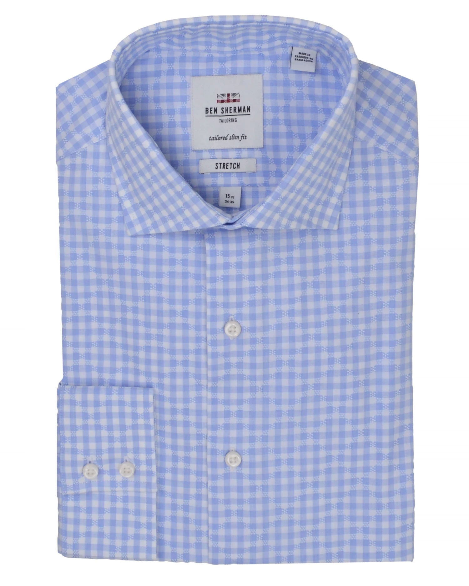 The Light Blue Dobby Dress Shirt is cut to a slim fit with 100% cotton and dobby texturing. Light blue pattern gives an instant wardrobe update.