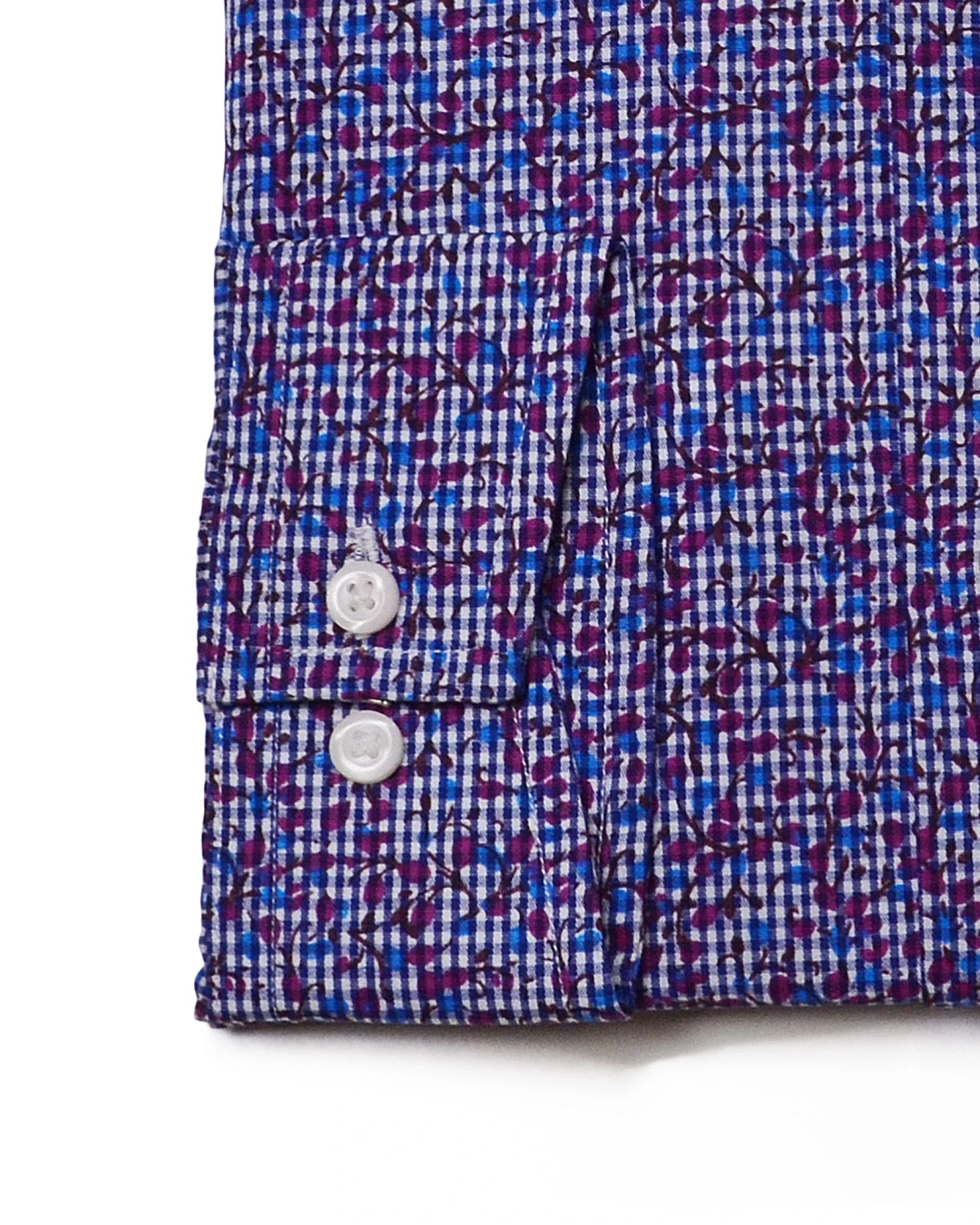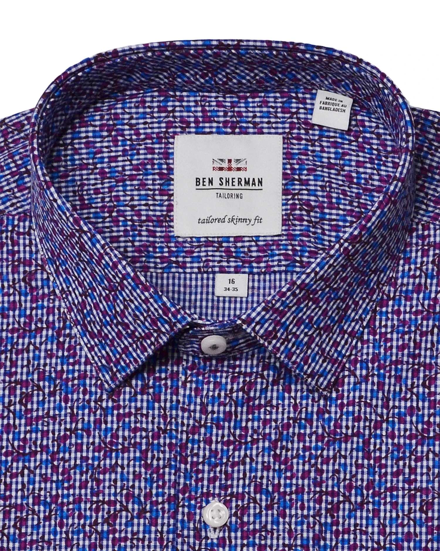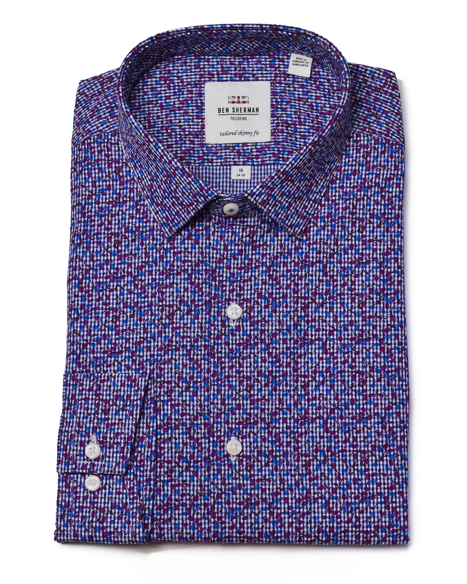 The Multi Floral Printed Gingham Skinny-Fit Dress Shirt combines a modern, skinny fit with a blue and purple pattern that will set you apart from the crowd.