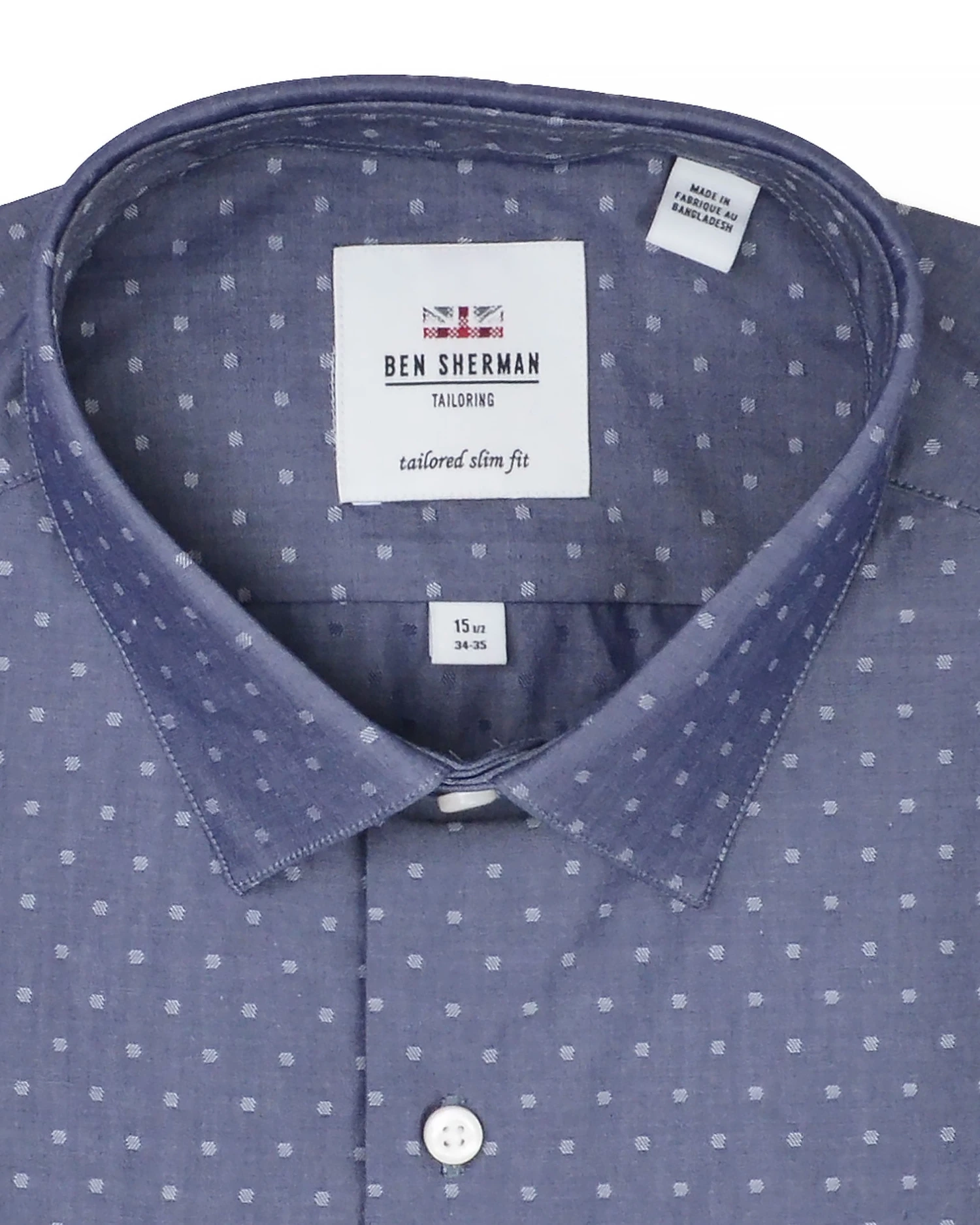 The Navy Dot Dobby Chambray Slim-Fit Dress Shirt features a subtle blue polka dot detail. Cut to our King’s slim fit in 100% cotton.