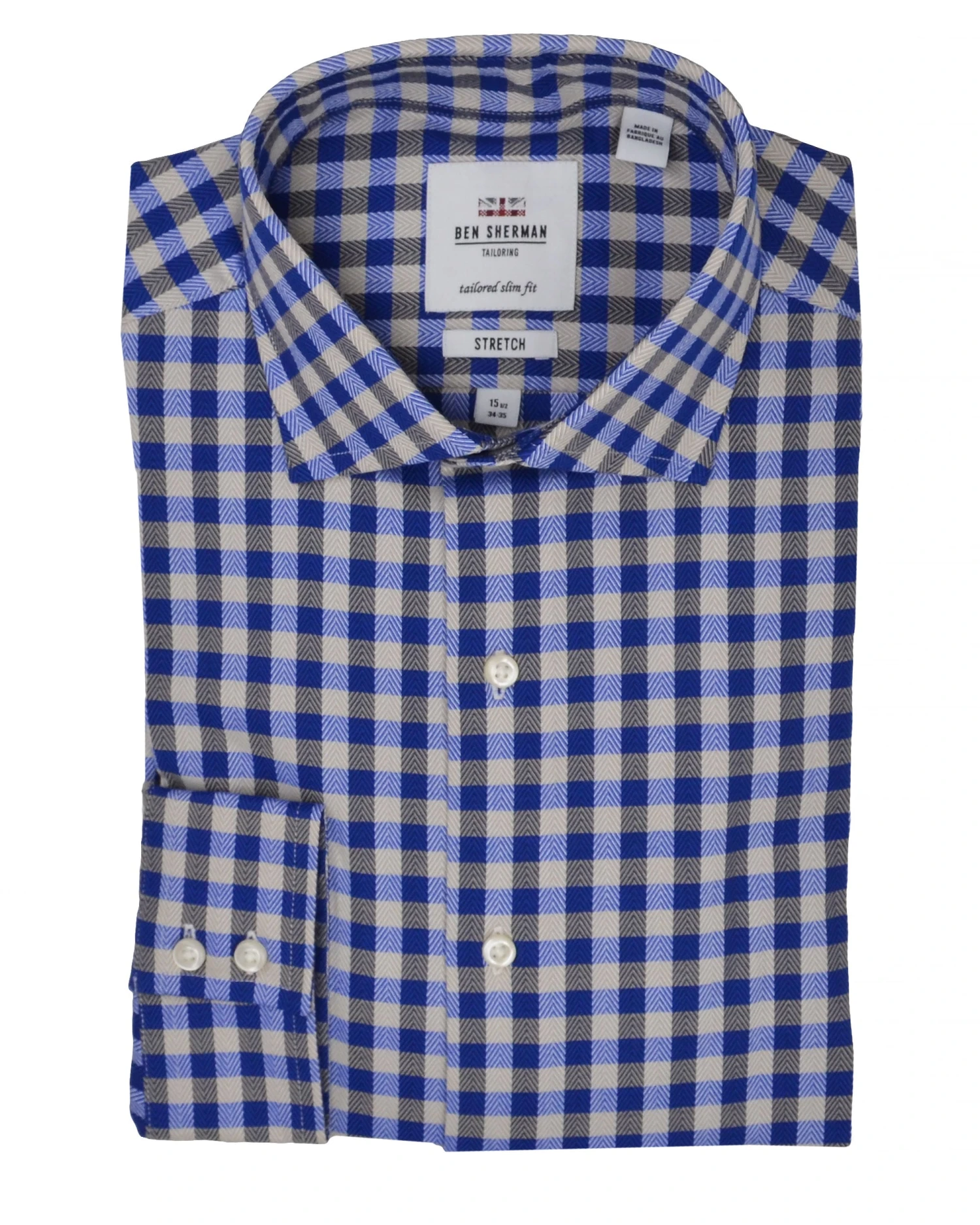 This navy and tan dress shirt looks great worn casual with denim or chinos, or dressed up with trousers and a jacket. Our signature King’s Slim Fit keeps the classic check looking contemporary.