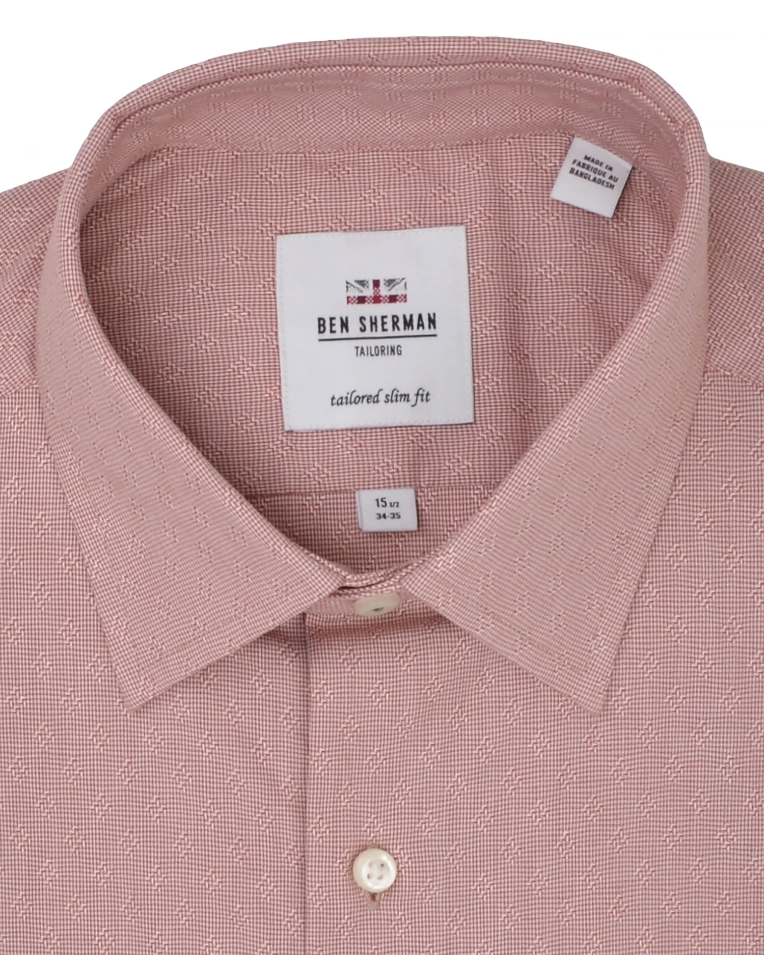 The Rust Dobby Puppytooth Slim-Fit Dress Shirt features a rust puppytooth detail. Cut to our King’s slim fit in 100% cotton.