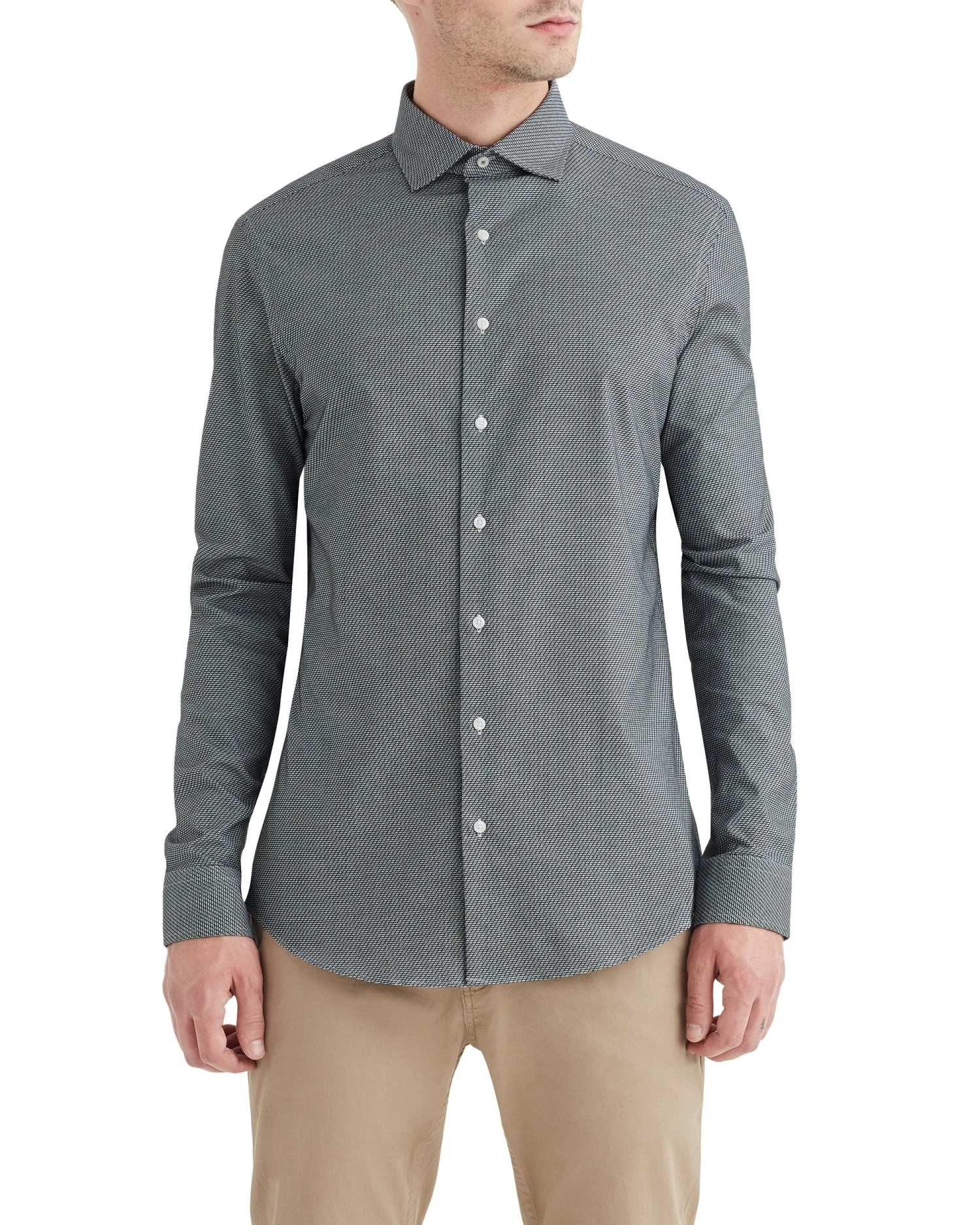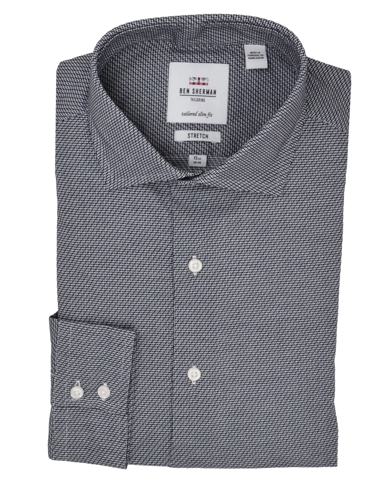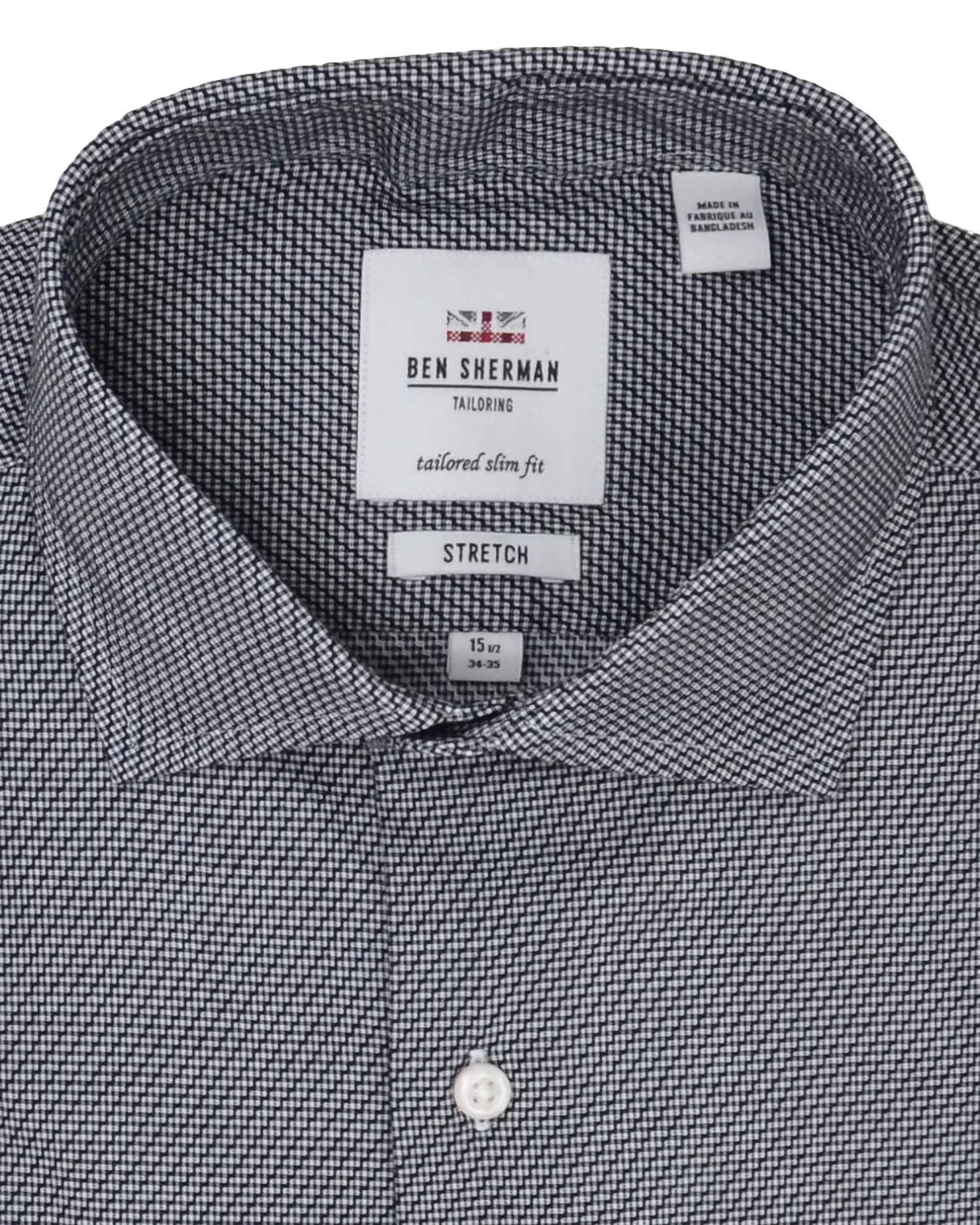 The Black & White Dobby Gingham Slim-Fit Dress Shirt is cut to a slim fit with 100% cotton and dobby texturing. Monochrome pattern gives an instant wardrobe update.