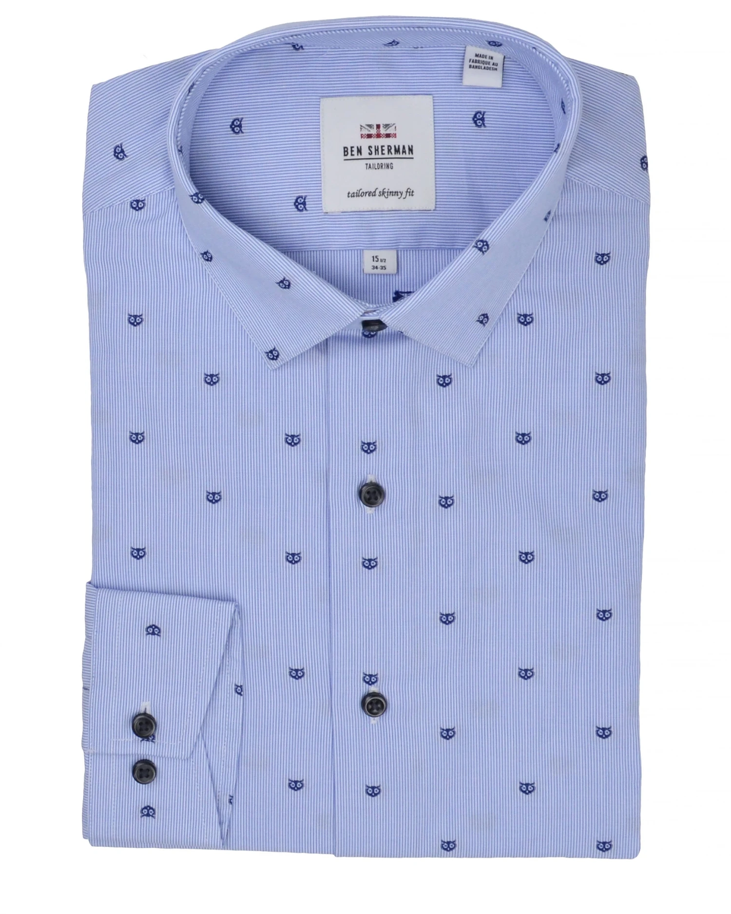 The Owl Clip-Spot Fineline Skinny-Fit Dress Shirt combines a modern, skinny fit with an owl pattern that will set you apart from the crowd.