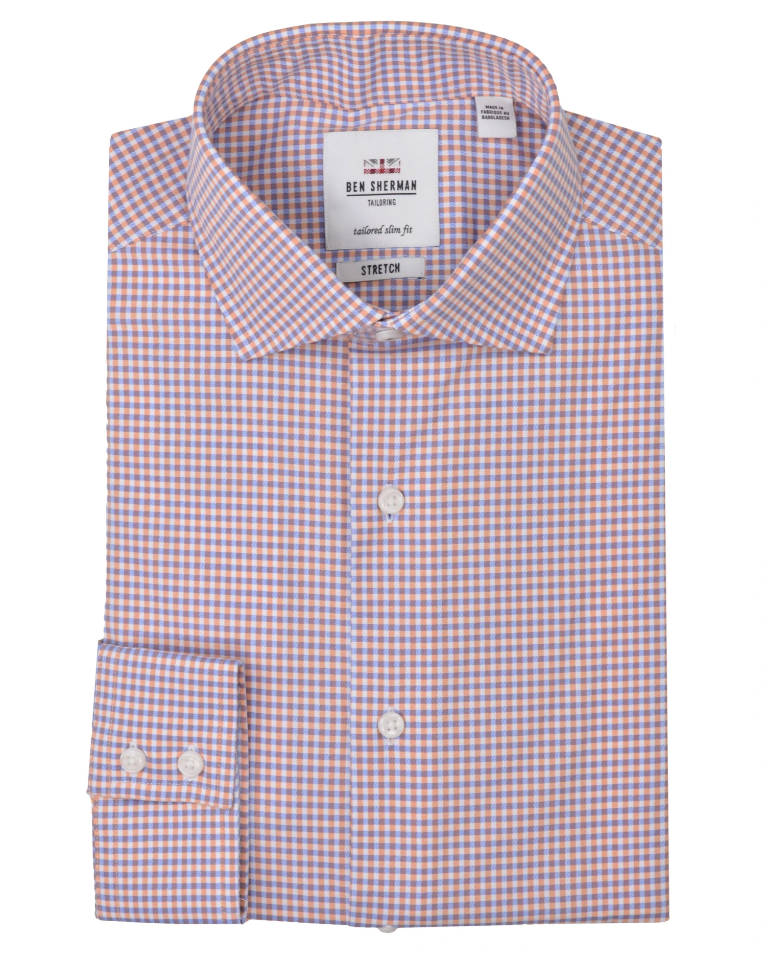 Introducing our Stretch Orange & Blue Dobby Gingham Dress Shirt with our signature King’s Slim fit. This shirt is perfect to smarten up your wardrobe.