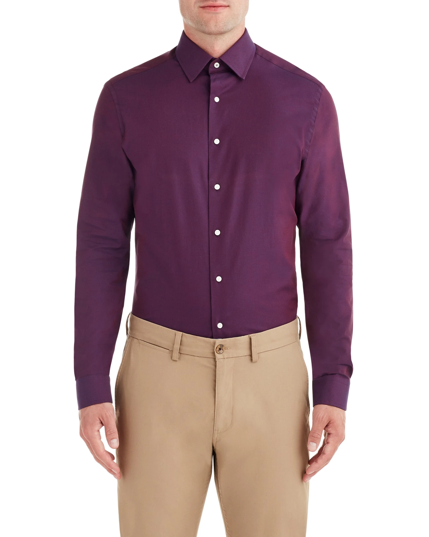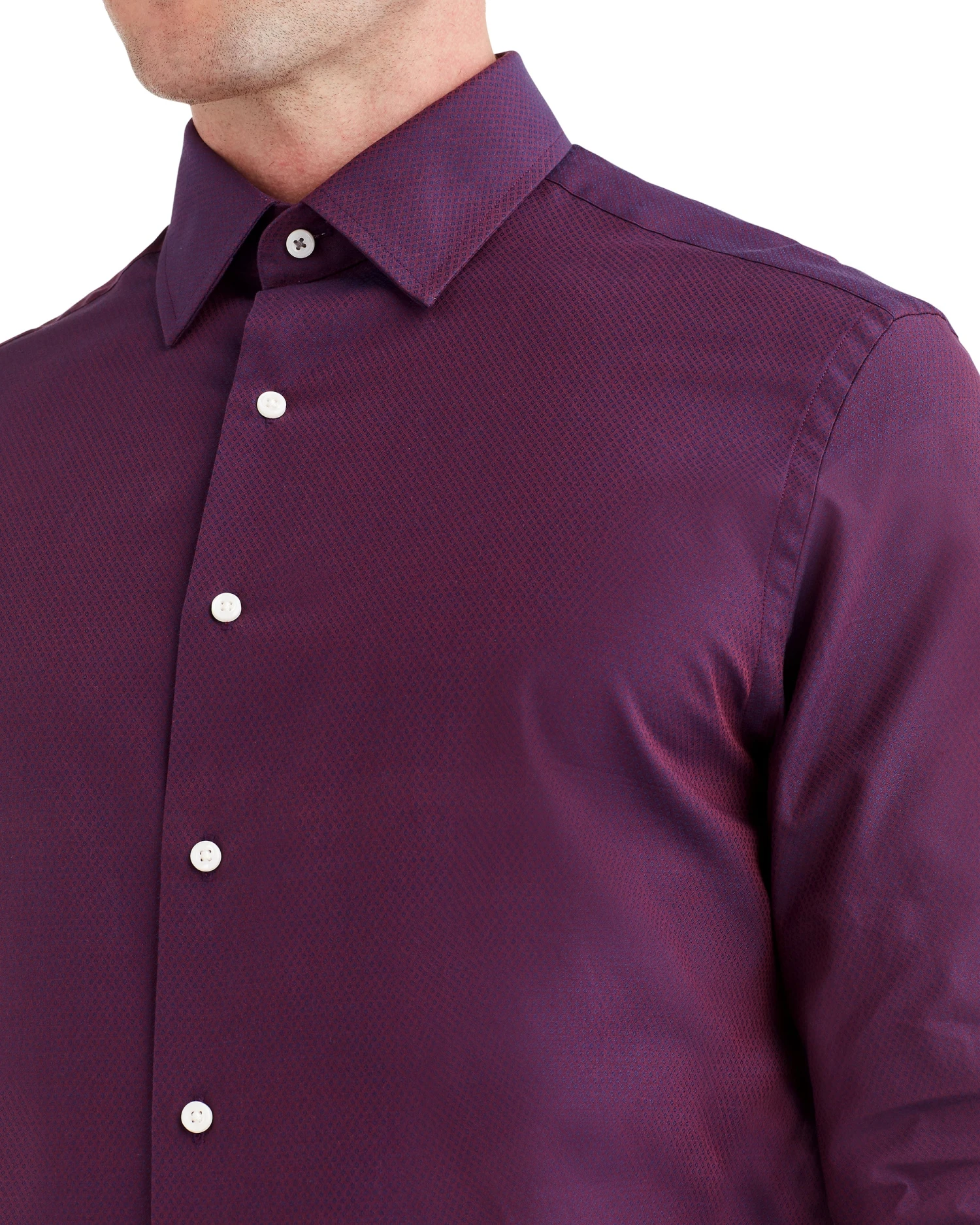Our Wine Iridescent Diamond Dobby Dress Shirt is cut to a slim fit in 100% cotton with a Florentine spread collar. Diamond dobby texturing elevates the classic shirt for an instant wardrobe update.